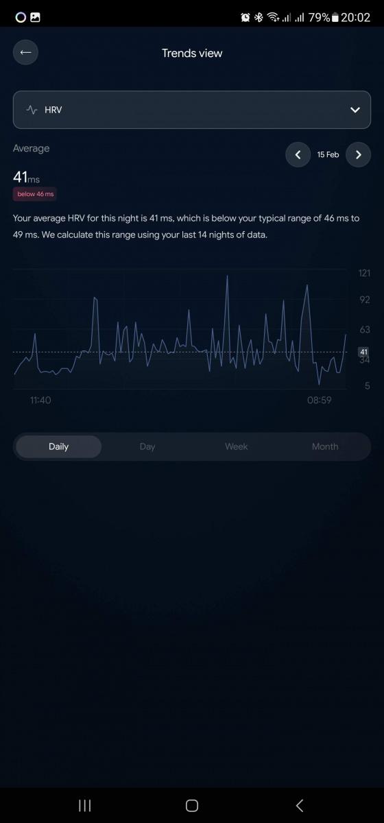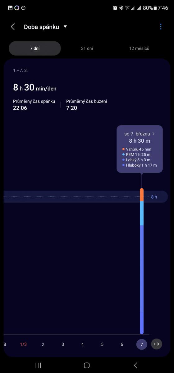 Uvedu příklad z praxe: vidím vykřičník u variability srdečního rytmu. Co znamená? Že jsem v jednom z měřených dní šel mimo pásmo, ve kterém se v noci obvykle pohybuji. Kouknu, které dny k anomálii došlo, a hned vidím, že to byly dny, kdy jsem šel pozdě spát. A jelikož mám rád grafy, můžu se hned přepnout z denního pohledu na týdenní a měsíční.