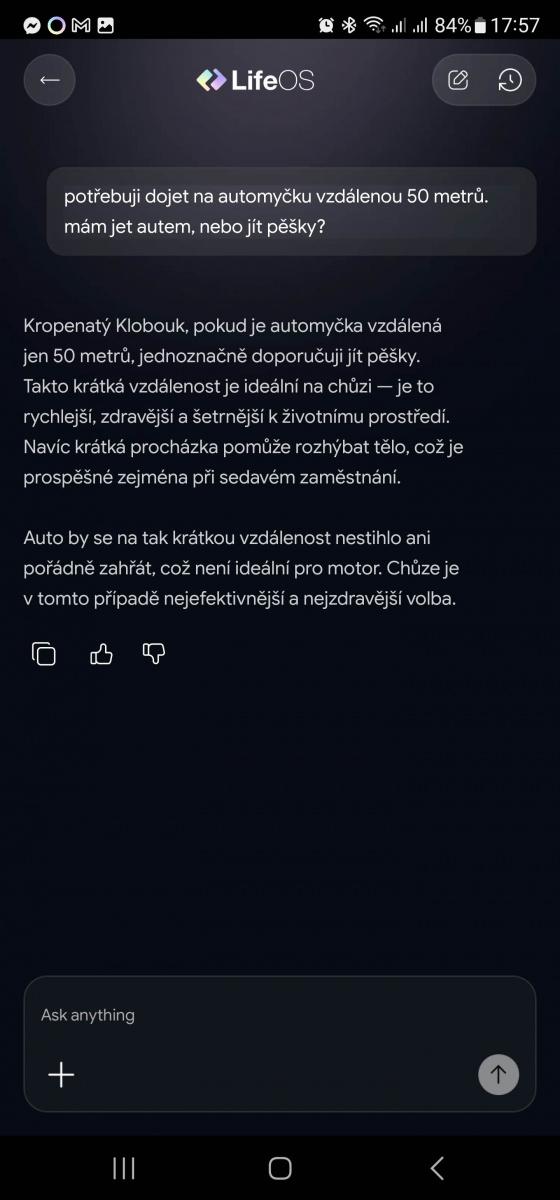 LLM a chatboti jsou jako vosy v létě. Je jich moc a někdy pěkně otravují. Byl jsem proto poměrně skeptický, když v aplikaci povídací sekci nazvali Life OS, jako kdybych komunikoval rovnou s centrálním mozkem lidstva.