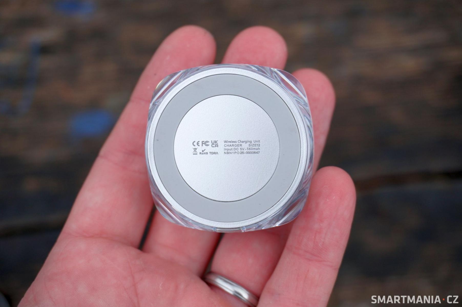 Nabíjení samozřejmě probíhá bezdrátově, k čemuž bych už drobnou výtku měl. Luna Ring 2.0 si rozumí pouze se dodávanou nabíječkou a dobíjet ho například z mobilu nelze – lze to však pochopit, prsten moc prostoru pro indukční cívku neposkytuje.Nabíječka sice působí robustně a neočekávám, že by bylo nutné ji nahrazovat nějakou univerzální s Qi standardem, ale mám rád, když se nemusíte spoléhat na jedinou věc.