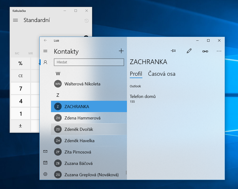 Budík, Microsoft Edge, OneNote, Kalendář, Xbox (chystá se)