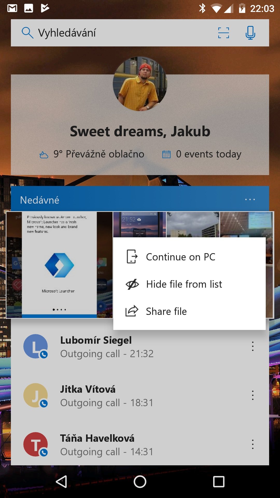 Novinkou je například funkce Continue on PC, tedy obdoba Handoff od Apple. Pokud máte launcher spárovaný se stejným účtem jako počítač s Windows 10, můžete se plynule přesunout z činnosti na telefonu na počítač, ať už prohlížíte fotky, dokumenty, apod. Tato funkce vyžaduje Windows 10 po podzimním Creators Updatu, který bude vypuštěn až 17. října.