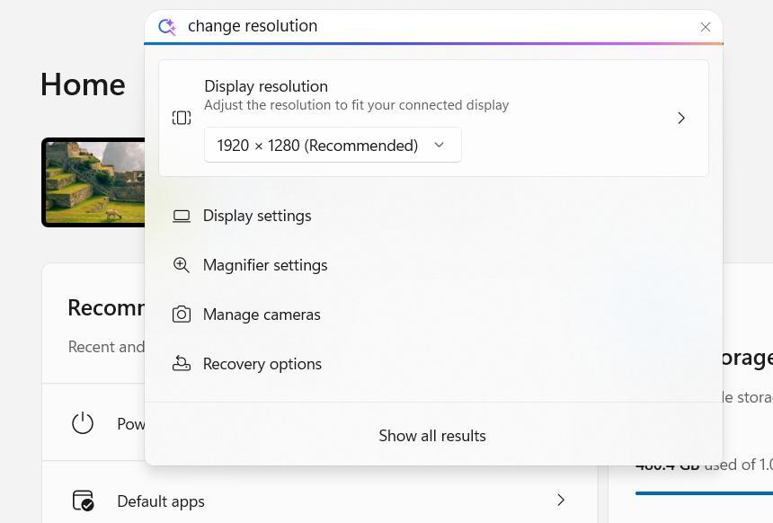Umělou inteligenci Microsoft nasadil i do vyhledávání v Průzkumníkovi souborů – i zde lze pokládat dotazy přirozeným jazykem, například „vyhledej mi všechny obrázky, na kterých se nachází vlak“. Vyhledávání je vcelku spolehlivé, vyhledávaný soubor ale musí ležet fyzicky na lokálním úložišti – v zástupcích online souborů na OneDrive umělá inteligence vyhledávat neumí. Vyhledávat přirozeným jazykem lze i v Nastavení, kde není zapotřebí pamatovat si přesné názvy položek, ale stačí napsat např. „potřebuji snížit rozlišení“. Výsledky vyhledávání vás pak navedou do patřičných položek.