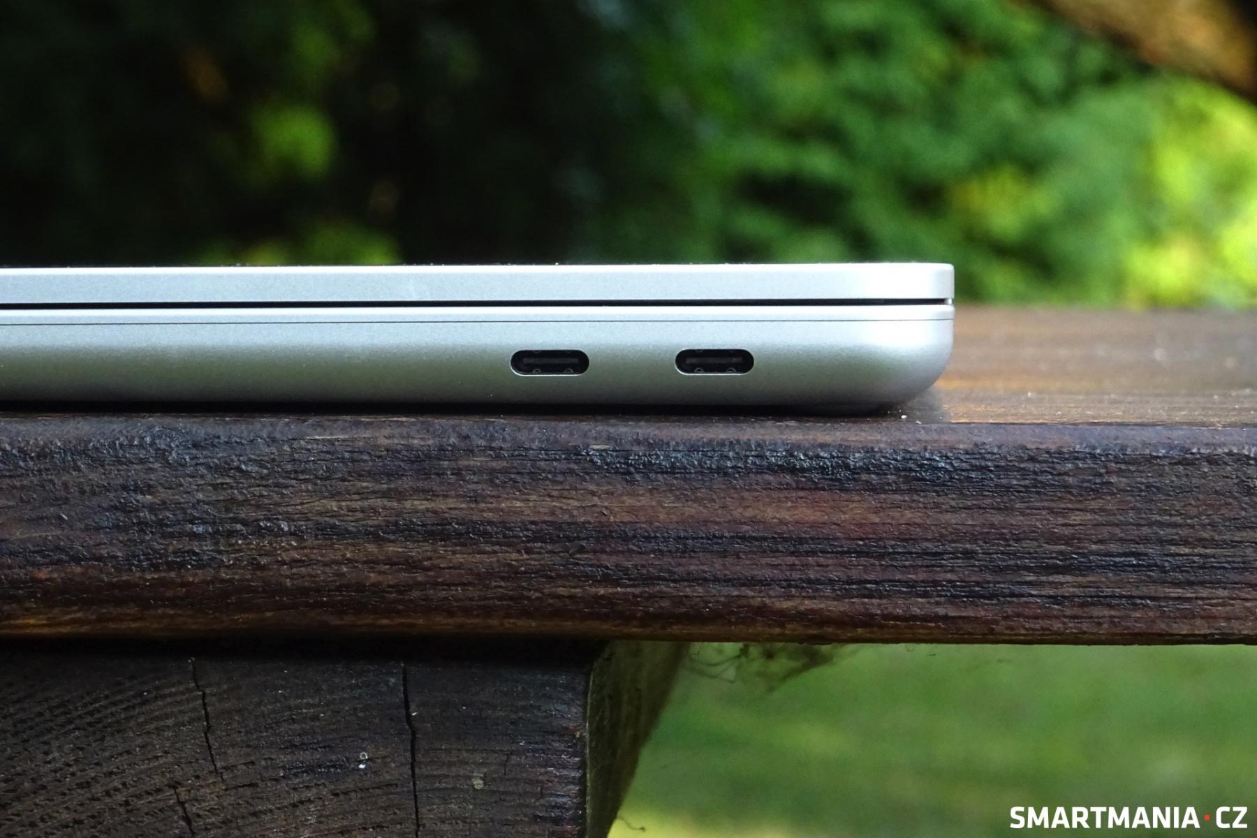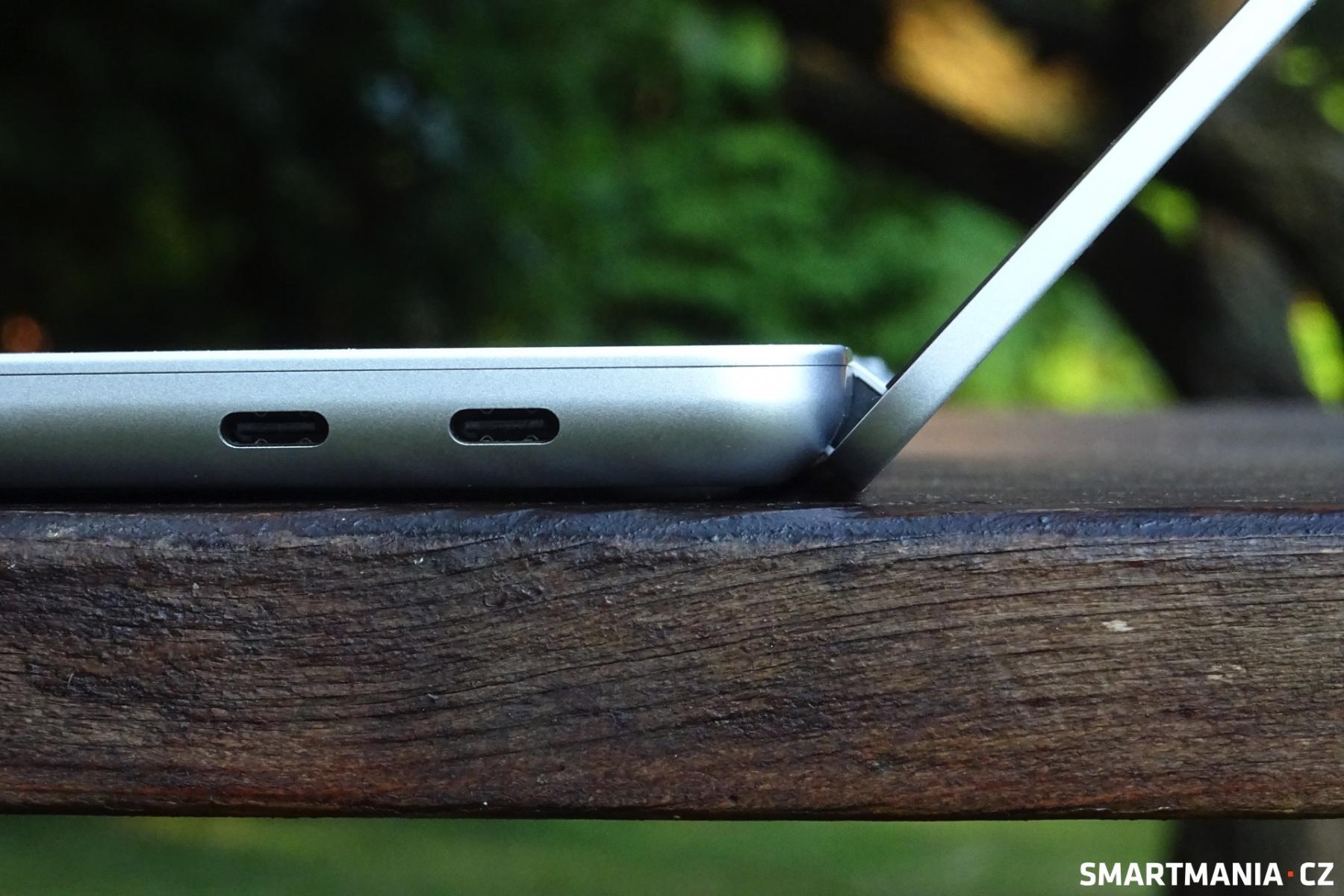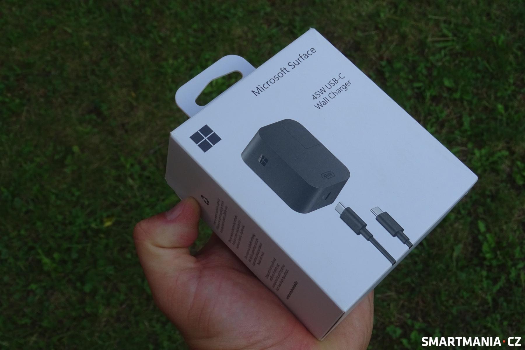 Skrze USB-C se počítač zároveň nabíjí, avšak adaptér si musíte pořídit sami, v balení se nenachází. Je navíc škoda, že obě USB-C se nacházejí napravo, což snižuje komfort v situacích, kdy by se hodilo nabíjet z levé strany. Microsoft nám společně s počítačem poslal 45 W adaptér, se kterým trvá dobíjení 50Wh baterie necelé dvě hodiny.