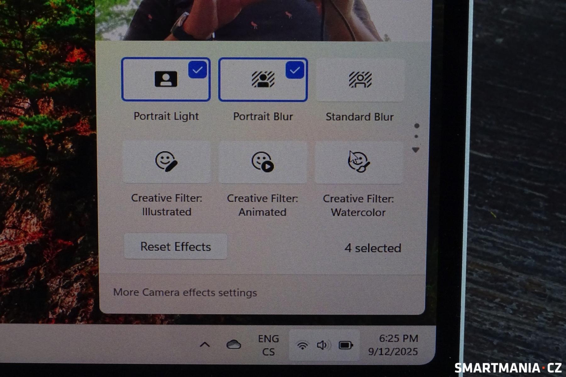 Zvolené efekty se propisují do všech aplikací, které webkameru používají, je ale potřeba podotknout, že spousta komunikátorů má v sobě zabudované efekty vlastní, a přitom se nemusí ohánět slovy o umělé inteligenci. Webkamera samotná ve dne funguje poměrně spolehlivě, za šera už je ale zřetelný šum a při prudkém pohybu jsou vidět duchové a artefakty na místech, kde se ještě před chvílí nacházel váš obličej.