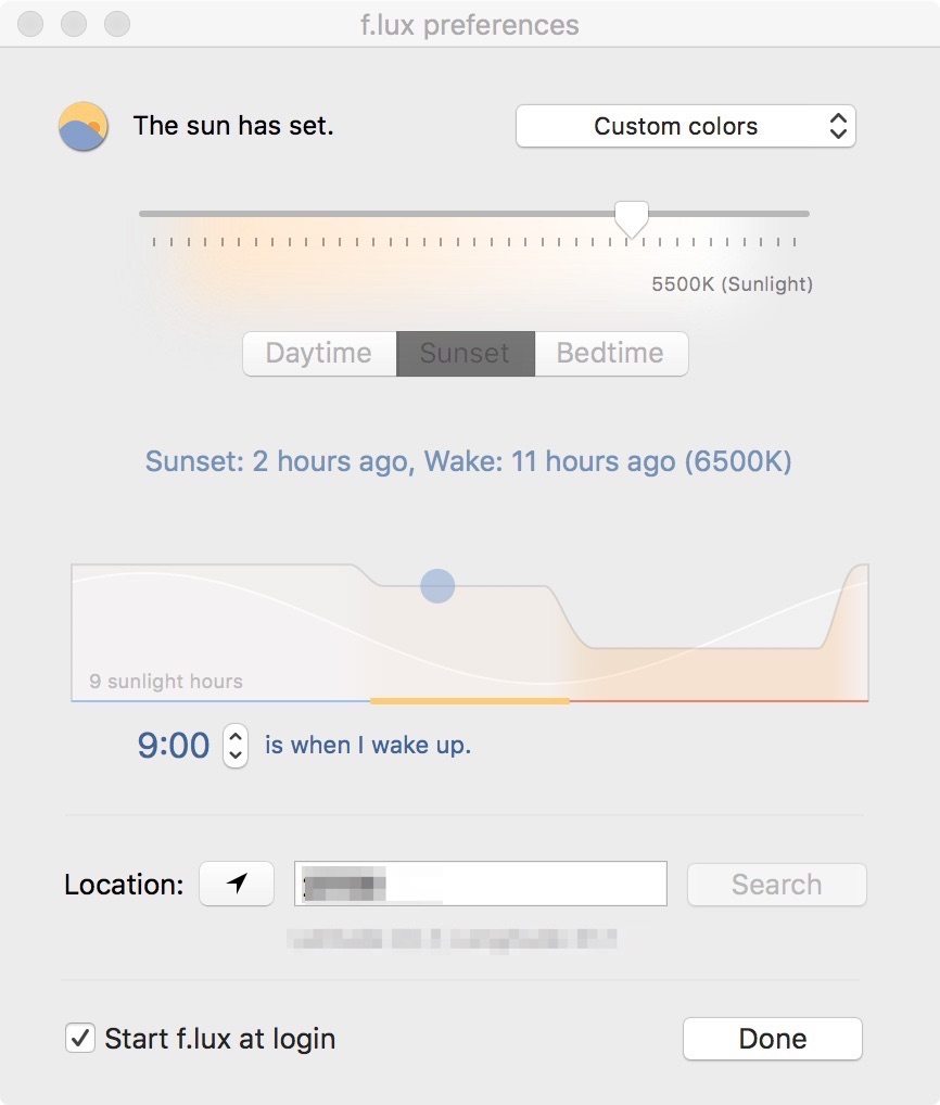 Jednou z nejznámějších aplikací pro úpravu barev a zahalení monitoru do „červeného závoje“ je f.lux. Aplikace je jednoduchá, funkční a nabízí nejdůležitější funkce jako je úprava barev podle času, a to včetně času v časovém pásmu v závislosti na vaší poloze, manuální nastavení teploty barev, vypnutí f.luxu pro určitou aplikaci, a navíc i řadu profilů.