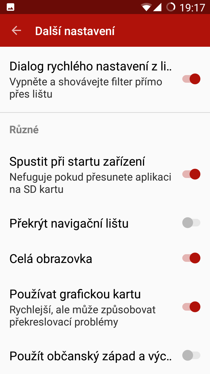 Aplikace sama o sobě nabízí celou řadu nastavení včetně nastavení časů filtrování, skrytí aplikace v horní liště, automatického spuštění aplikace při startu zařízení a mnoho dalších. Prostředí je příjemné, intuitivní a designově přívětivé.