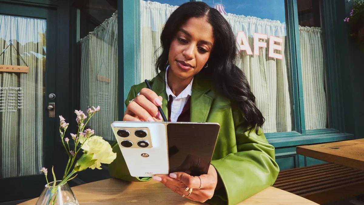 - Razr Fold se pyšní ohebným 8,1″ displejem, který lze ovládat stylusem