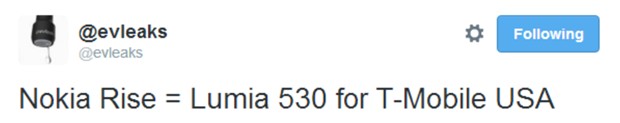 Pravý nástupce Lumie 520 má přijít teprve nyní, podle Evleaks bude prodáván u amerického T-Mobile. Má se jednat o Nokii Rise, ačkoliv z tweetu není jasné, zdali se jedná o kódové označení nebo o jméno, pod kterým bude tento operátor Lumii 530 prodávat. Její kódové označení má být podle dřívějších informací Nokia Rock. Také není jasné, jak to bude s její celosvětovou dostupností.