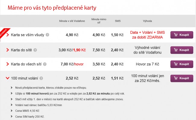 Mobilní operátor Vodafone začal od června nabízet nový tarif 100 minut volání, který zařadil mezi běžné předplacené karty.