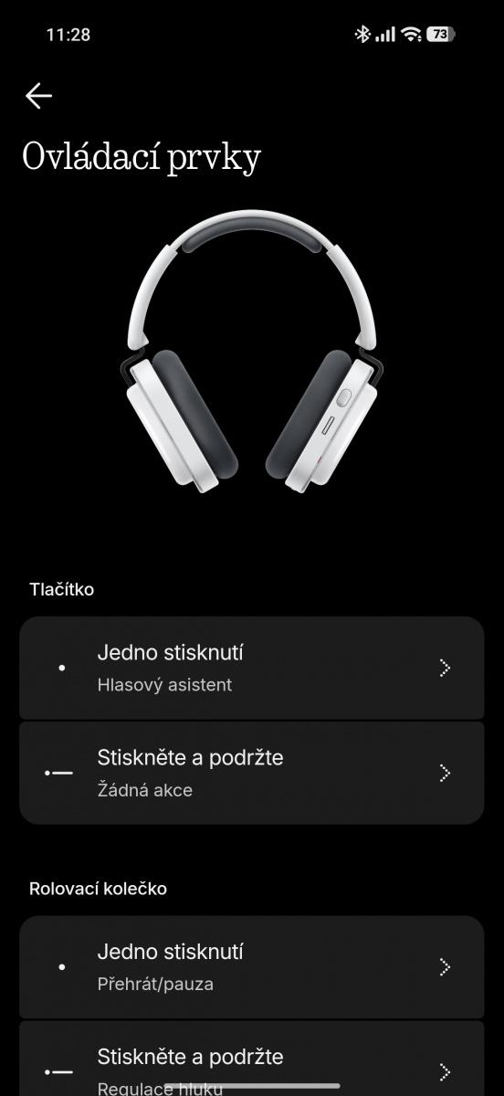 Co se ovládání týče, tak to je řešeno, jak jsem nakousl výše, prostřednictvím tří elementů – programovatelného tlačítka na venkovní straně pravého náušníku a dvojice tlačítek na jeho boku, která jsou umístěna tak, že se ovládají palcem. Rolovací kolečko slouží primárně pro regulaci hlasitosti, ale je možné ho i stisknout nebo stisknout a podržet.