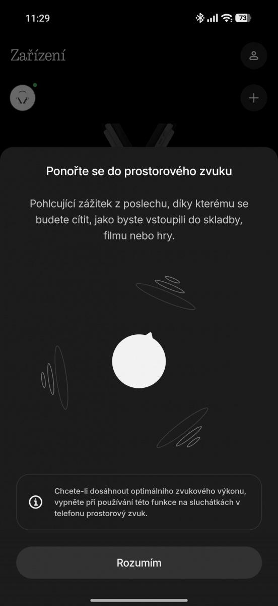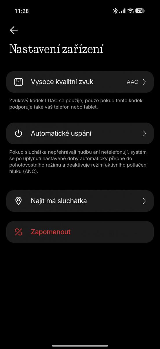 V základu sluchátka běží na kodeku AAC, a pokud budete chtít využívat kvalitnější LDAC, budete na něj muset přepnout v aplikaci, v sekci Nastavení zařízení. Přepnutím na LDAC ale snížíte výdrž sluchátek a každé přepnutí znamená restartování sluchátek.