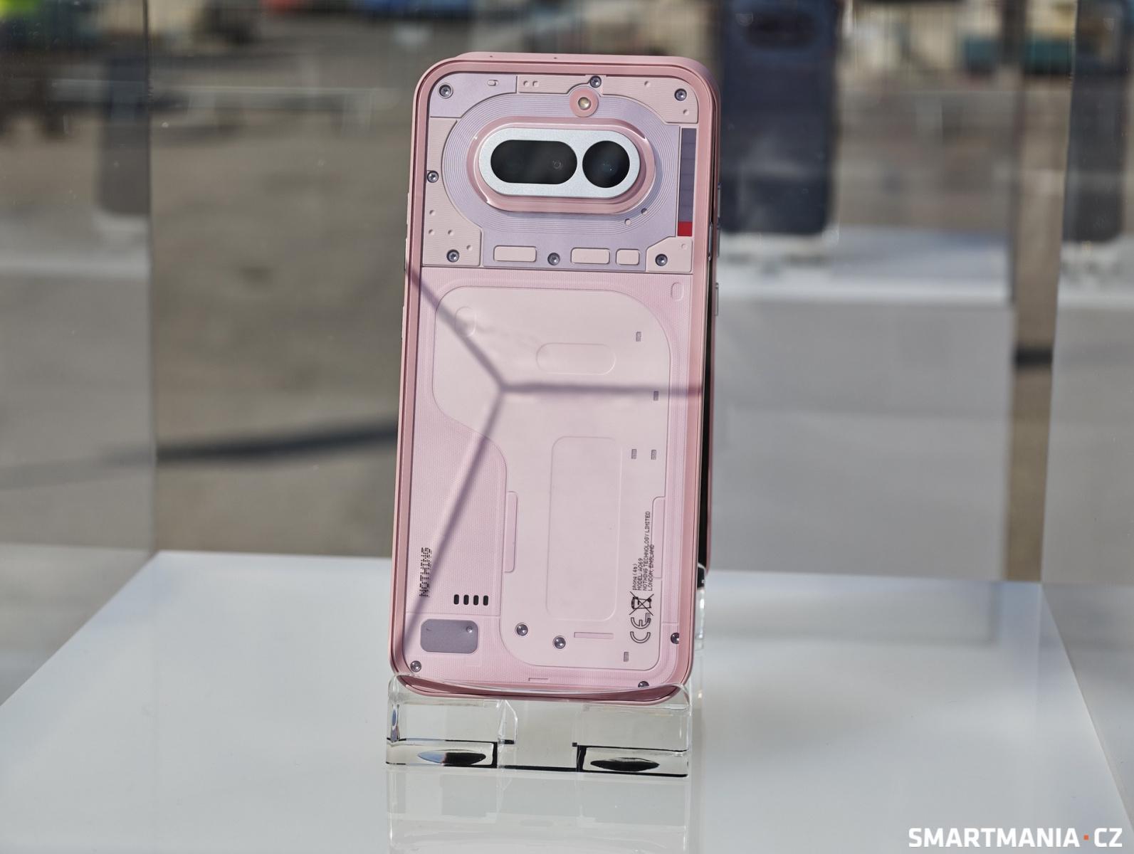 Značka Nothing se u letošní novinky více odvázala v barevných variantách – ke konzervativní bílé a černé přihazuje modrou a růžovou. Telefon se pyšní zvýšenou odolností IP64, což znamená, že by měl ustát náhodný pád do mělké vody.