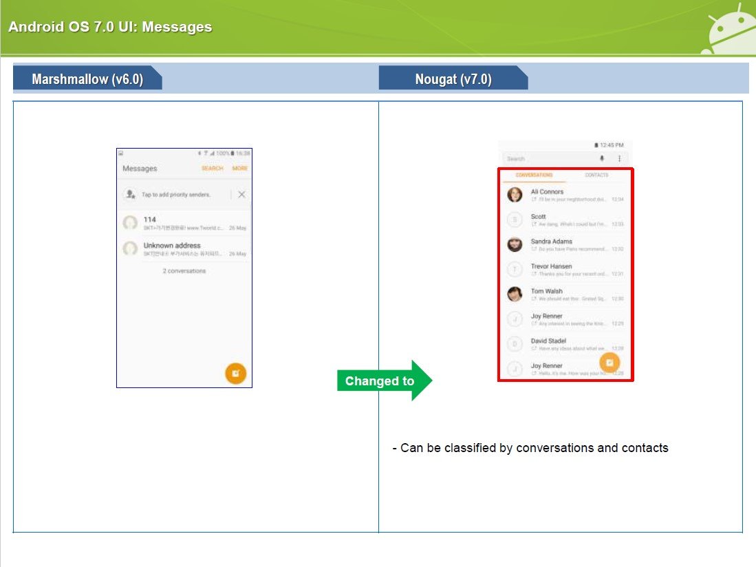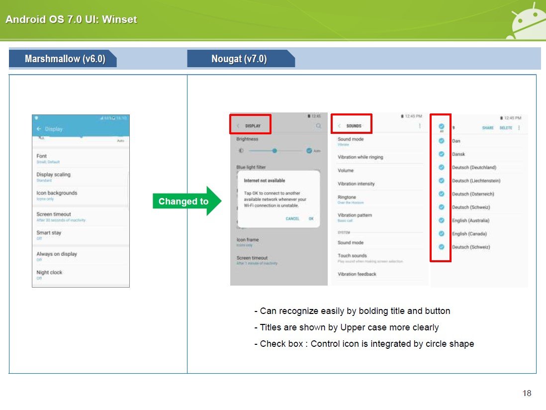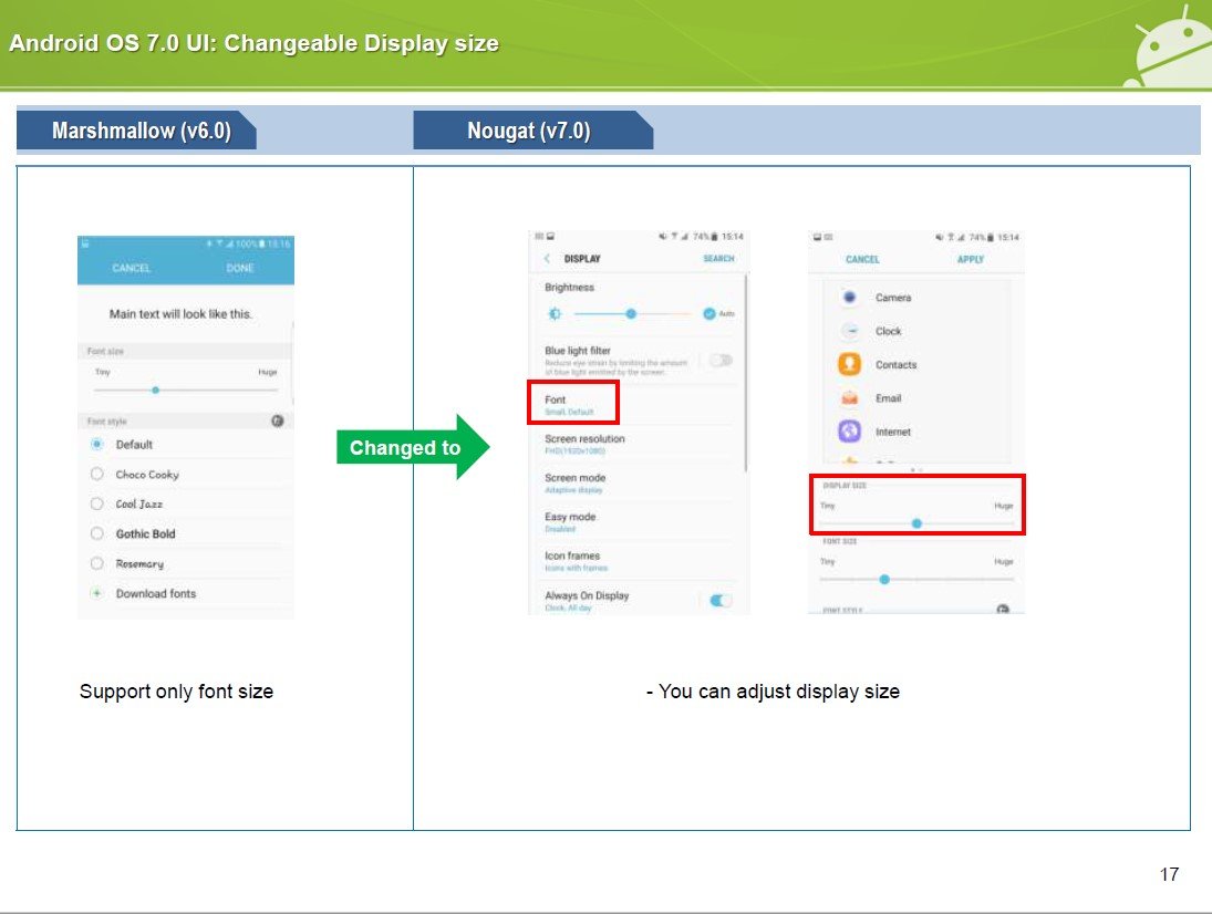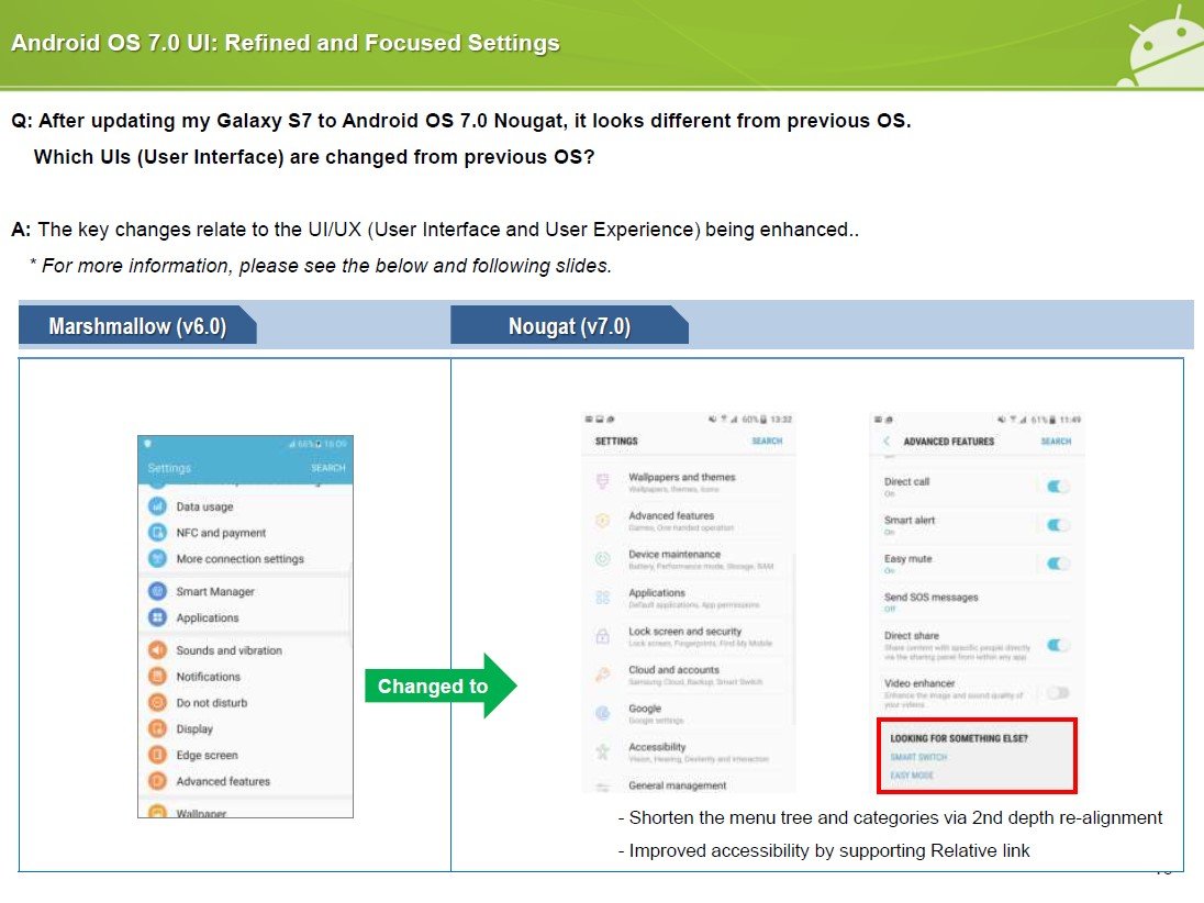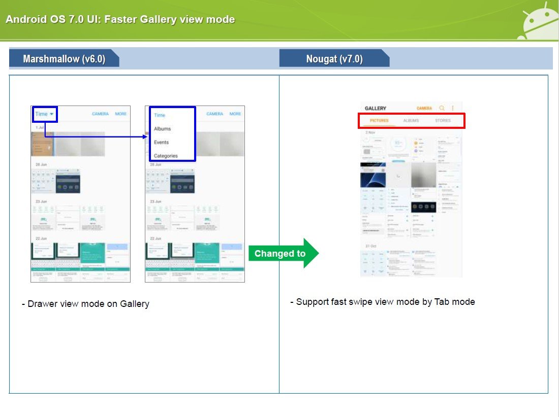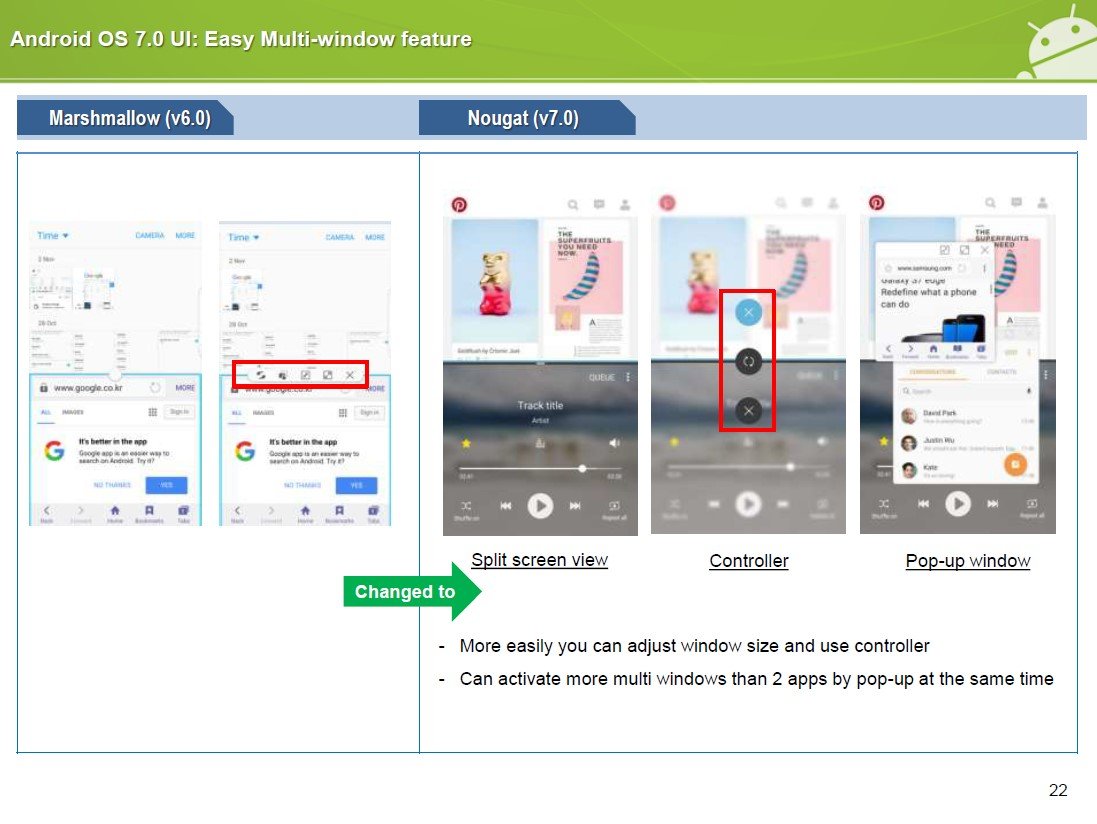 Společnosti Samsung se nepodařilo udělat „díru“ do světa s modelem Galaxy Note7, proto se alespoň snaží maximálně uspokojit stávající zákazník tím, že do Galaxy S7 & Galaxy S7 edge naservíruje co možná nejodladěnější software. Jaký bude nakonec výsledek se pravděpodobně dozvíme ještě tento rok – proslýchá se, že Samsung stihne novou verzi Androidu vydat ještě letos. Na snímcích níže se můžete podívat na všechny změny, které aktualizace přinese – vlevo je stará verze Marshmallow, vpravo pak nová verze Androidu Nougat. Jak se vám líbí?