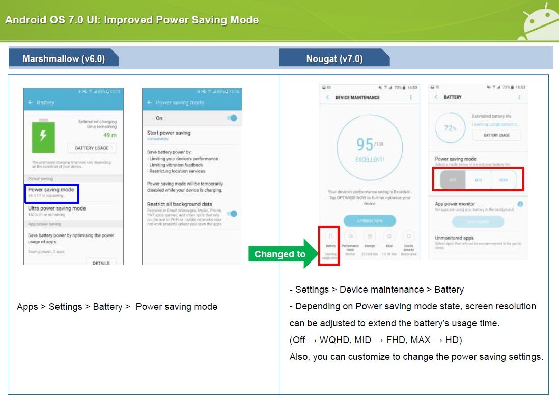 Před dvěma týdny jsme vás informovali o tom, že jihokorejská společnost Samsung pečlivě testuje Android 7.0 Nougat a připravuje jej pro své topmodely Galaxy S7 & Galaxy S7 edge (více informací). Následně na to jsme se dozvěděli, že se Samsung chystá do systému přidat funkci, kterou již dříve nabízel Galaxy Note7 (více informací) – možnost přepínat si mezi HD, Full HD a nativním Quad HD rozlišením, přičemž jako výchozí nastavení bude zvoleno Full HD rozlišení, aby měl grafický čip o něco méně práce. Tato „drobnost” bude mít zcela jistě pozitivní vliv na výdrž baterie.
