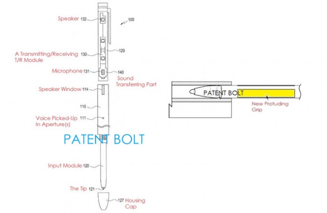 Podle nich by mohl S Pen posloužit nejen jako stylus určený pro přesnější ovládání, ale zároveň jako bezdrátová náhlavní souprava. Pokud budeme brát v potaz nepříliš kompaktní rozměry tabletofonů, tak integrace sluchátka do dotykového pera se jeví jako smysluplná myšlenka. V kombinaci s chytrými hodinkami, které zobrazují jméno volajícího by již nebylo třeba tak často vytahovat objemný telefon z kapsy saka či kalhot. Celý koncept se výrazně podobá tomu, co jsme mohli vidět již u Asusu a jeho hybridního zařízení Padfone z roku 2012.