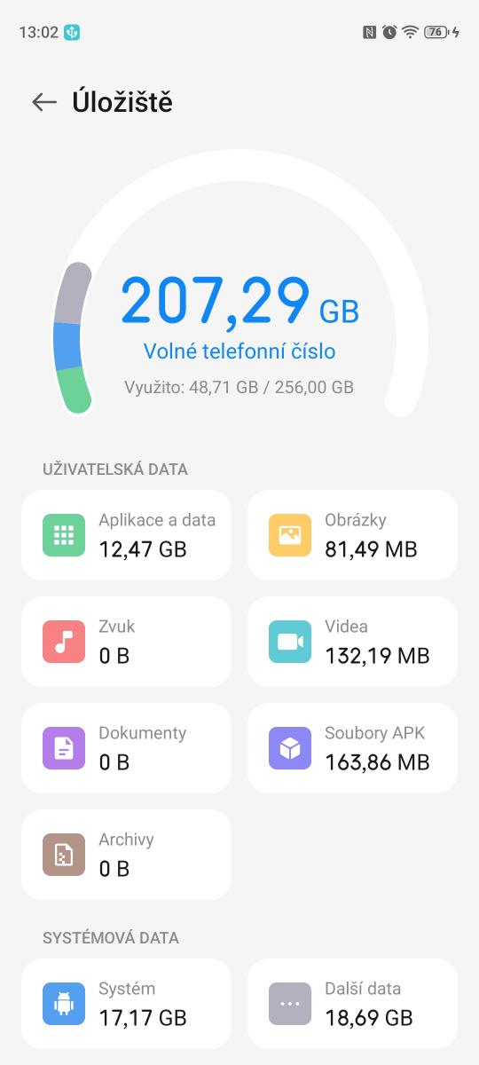 Horizontální fotomodul, o kterém jsem již referoval, docela zdařile maskuje, že nabízí vlastně jen jeden pořádný fotoaparát. To je hlavní 50,3Mpx snímač s clonou f/1.6 a podporou pro fázové ostření i autofokus. Vedle něj najdeme ještě 2Mpx snímač pro lepší oddělení pozadí od popředí u portrétů a také doplňkový 0,8Mpx fotosnímač. Chápete správně – bez obou by se telefon obešel, ale to by pak nemohl výrobce lákat na 3 fotoaparáty, ale pouze na jeden. Vepředu se nachází ještě 20,2Mpx kamerka pro selfíčka.