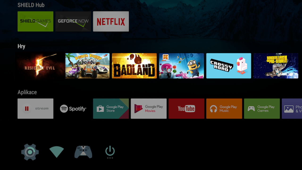 Pro zapnutí konzole se stačí dotknout černého senzorového tlačítka s logem výrobce, ale můžete ji zapnout i z pohodlí gauče, kdy postačí pouze zapnout jeden z ovladačů a SHIELD se automaticky spustí. Prostředí je velice intuitivní a přehledné, rozhodně v něm nebudete tápat. Pořadí aplikací si na hlavní obrazovce můžete nastavit podle sebe, nebo nechat systém, aby řadil posledně použité aplikace na první místo. Systém je samozřejmě kompletně lokalizovat do českého jazyka.