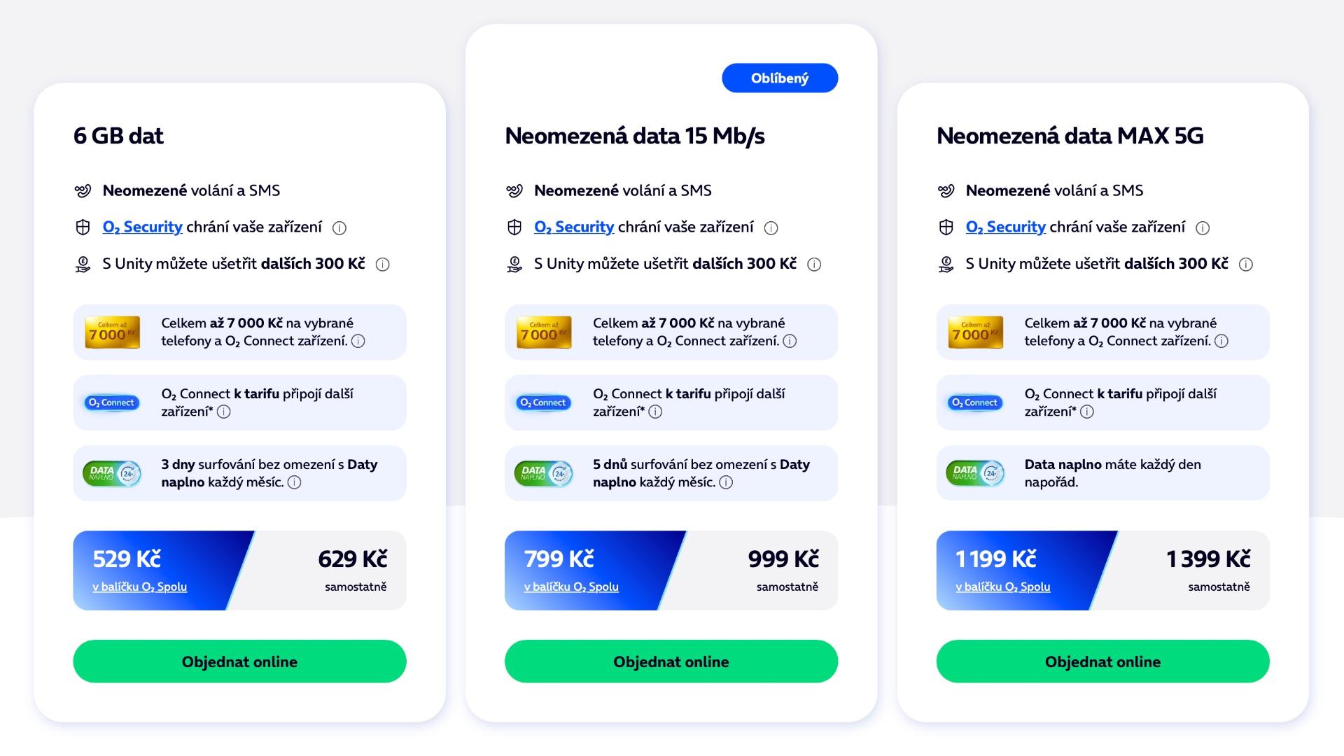 U tarifů, které nabízí neomezená mobilní data s omezenou přenosovou rychlostí, je cenový rozdíl bohužel ještě markantnější. Základní Neo Stříbrný doposud nabízel 10Mb/s rychlost a vyšel dle ceníkové ceny na 949 korun měsíčně. I na něj se však stahovala sleva na prvních 12 měsíců, s níž vyšel na 699 korun pro nové zákazníky, případně na 499 korun pro klienty O2 Spolu, kteří mají kombinovanou nabídku s více jak jednou službou – například pevný internet nebo televizi Oneplay.