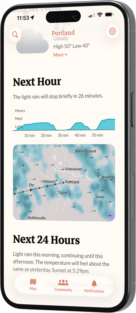 Pro zlepšení předpovědí počasí v reálném čase bude Acme Weather podporovat také crowdsourcingové hlášení komunity, které bude zobrazovat povětrnostní podmínky od uživatelů aplikace na základě jejich polohy. Acme Weather bude také podporovat různé typy map, včetně radaru a blesků, celkových srážek a sněhu, větru, teploty a vlhkosti, oblačnosti, tras hurikánů a dalších. Aplikace bude také podporovat komplexní sadu meteorologických oznámení pro varování před deštěm, výstrahy před nepříznivým počasím, blesky, stejně jako upozornění na duhu a západy slunce ve vaší oblasti.