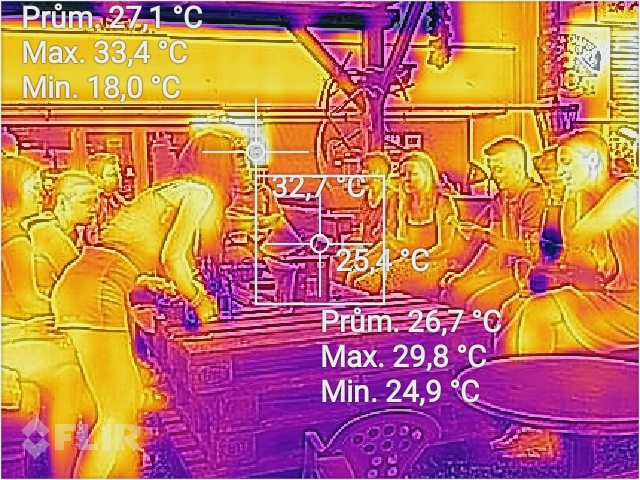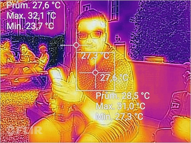 - speciální aplikace pro termokameru FLIR s technologií MSX; fotografie, měnitelné spektrum tepla; měření teploty; data o minimální, maximální a průměrné teplotě