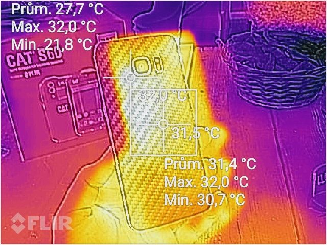 Modul zmíněné termokamery pochází od společnosti FLIR, která je považována za naprostou špičku ve svém oboru. Skrze nativní aplikaci lze například pořizovat video, lokalizovat teplotní pole či zaznamenávat minimální a maximální hodnoty teploty. Termokamera má fungovat až do vzdálenosti 30 metrů, nicméně jak jsme měli možnost otestovat, u vzdálených objektů už výsledky bývají zkreslené.