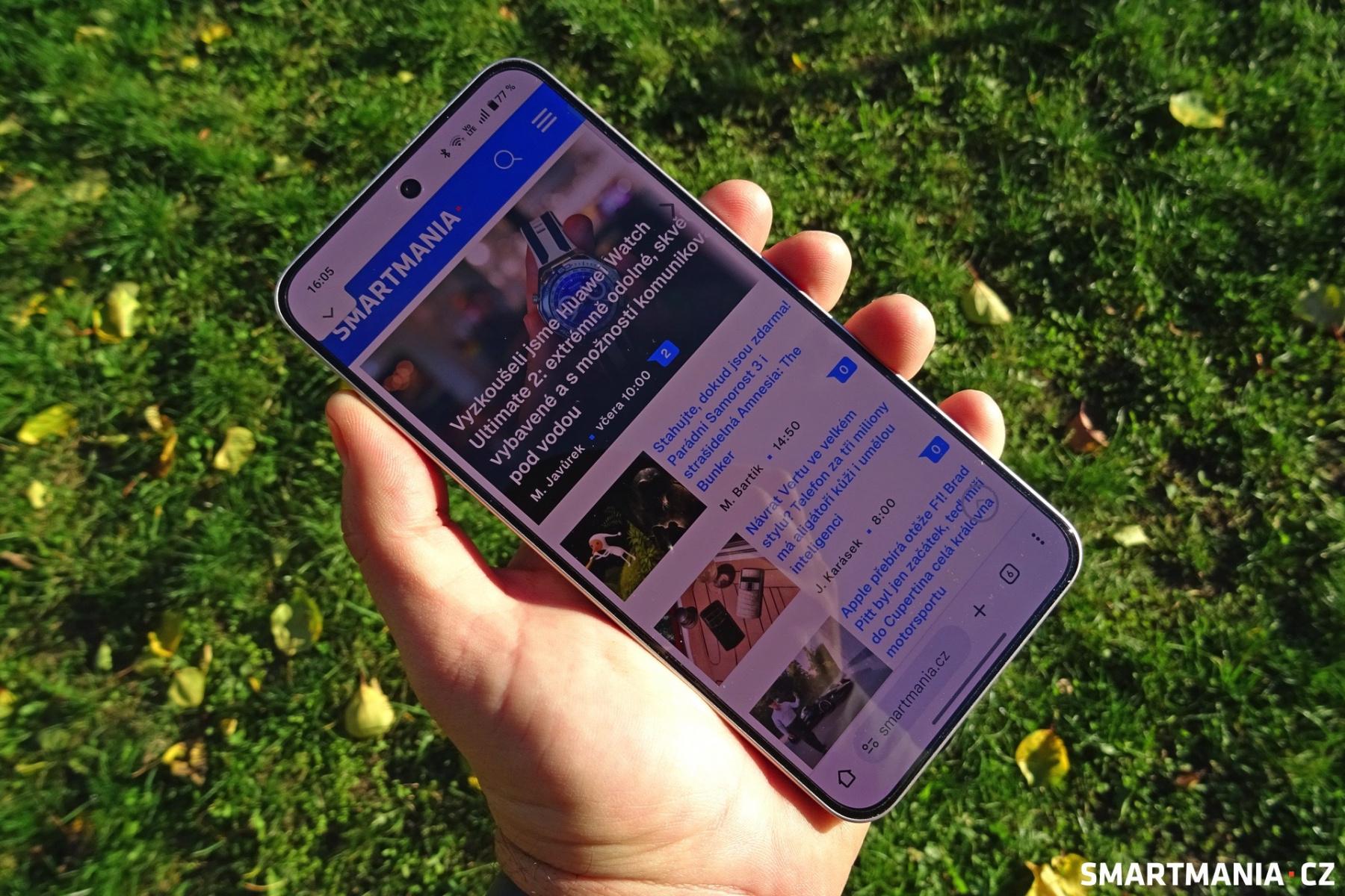 Co se týče obnovovací frekvence dotykové plochy, podle výrobce má činit až 3 000 Hz, nicméně při běžném používání mi přišla odezva mírně zpomalená – scrollování po webu se mi zdálo „gumovější“ než na jiných telefonech. Spokojen jsem ale byl s podáním barev – v nastavení je výběr z několika barevných režimů, přičemž předvybraný „živý“ profil posiluje barvy a zvyšuje kontrast do „líbiva“. Lze však zvolit i přirozenější podání, anebo rovnou sáhnout po profilu P3, který slibuje věrnou reprodukci v barevném spektru DCI-P3. Třešničkou na dortu je podpora HDR10+, kterou oceníte například při sledování filmů v aplikaci Netflix.
