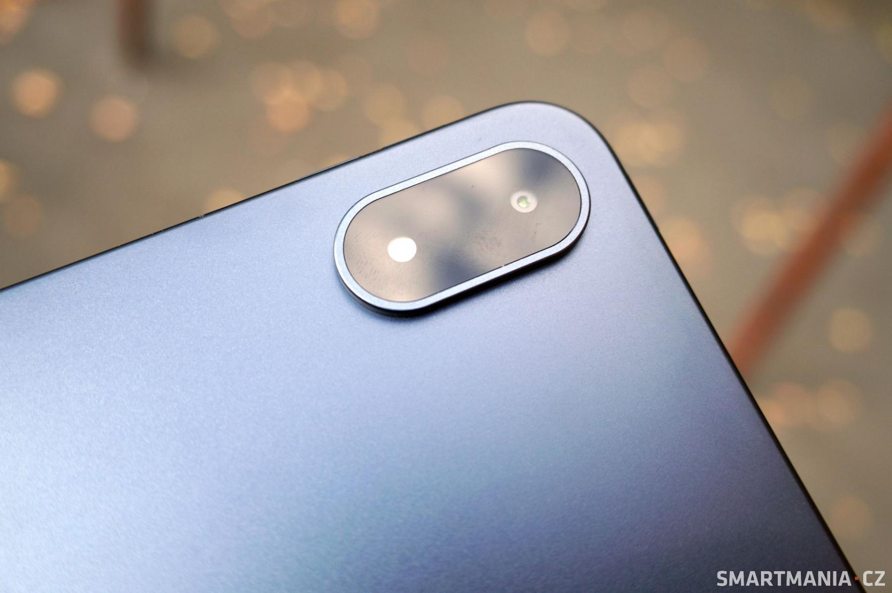 Zadní strana je pak plochá a její rovinu narušuje jen modul fotoaparátu v rohu. Někoho možná překvapí, že ho tvoří jediný objektiv doprovázený přisvětlovací diodou, ale buďme rádi aspoň za to, ne každým tabletem si můžete posvítit. Běhat s tabletem ale podobně jako s mobilem nebudete, Pad 3 má totiž rozměry 290 × 210 × 6 mm a váží 675 g, žádný drobeček to tedy není.