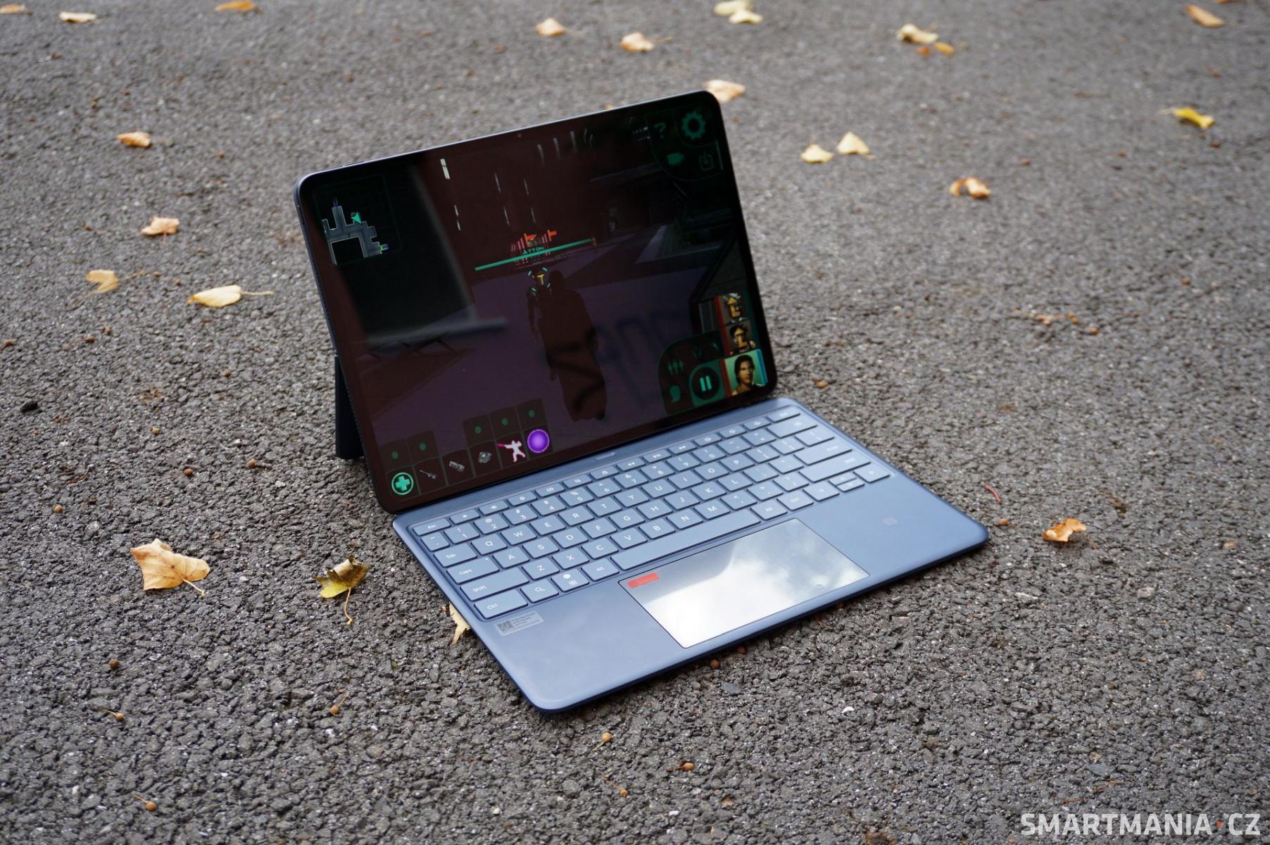 K nám se do redakce dostal navíc praktický kryt, který chrání zadní stranu tabletu a zároveň se k němu dá magneticky připojit i druhý díl coveru, klávesnice. Na ní sice absentují české popisky kláves, ale psát na ní naším jazykem není problém – ostatně, 80 % této recenze vzniklo na testovaném tabletu a zasekával jsem se jen na speciálních znacích, které běžně píšu v kombinaci altu a numerické klávesnice.