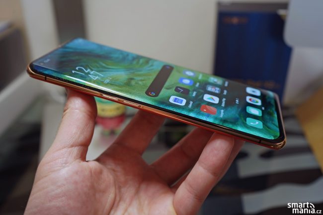 Oppo Find X2 Pro díky výrazným barevným variantám zaujme na první pohled. Rozhodně se ale nejedná o žádného drobečka, o čemž svědčí i přítomnost 6,7″ displeje, naštěstí s velmi tenkými rámečky. I tak má ale na výšku 165 mm. Tloušťka a hmotnost se nepatrně liší podle provedení zadní strany – v nabídce je jak verze z keramiky (8,8mm a 217 gramů) nebo kůže (9,5mm a 200 gramů), kterou jsem měl k dispozici já.