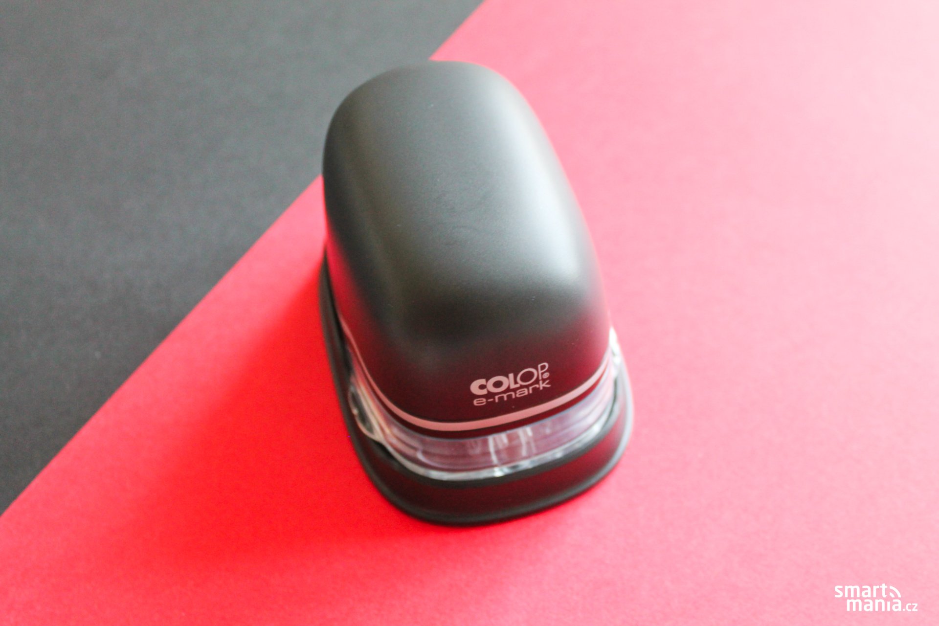 Začnu jako již tradičně vizuální stránkou zařízení. Colop e-mark sestává ze dvou částí, nabíjecí základny a samotného razítka. S trochou představivosti lze v e-marku vidět oblázek – razítko je příjemné na dotek, nikde nevrže, nepůsobí lacině a je zpracováno na jedničku. Elegantní vzhled nebude v kanceláři vyčnívat, pakliže zvolíte konzervativní černou barvu. S bílou barvou už upoutá nejednoho kolemjdoucího.