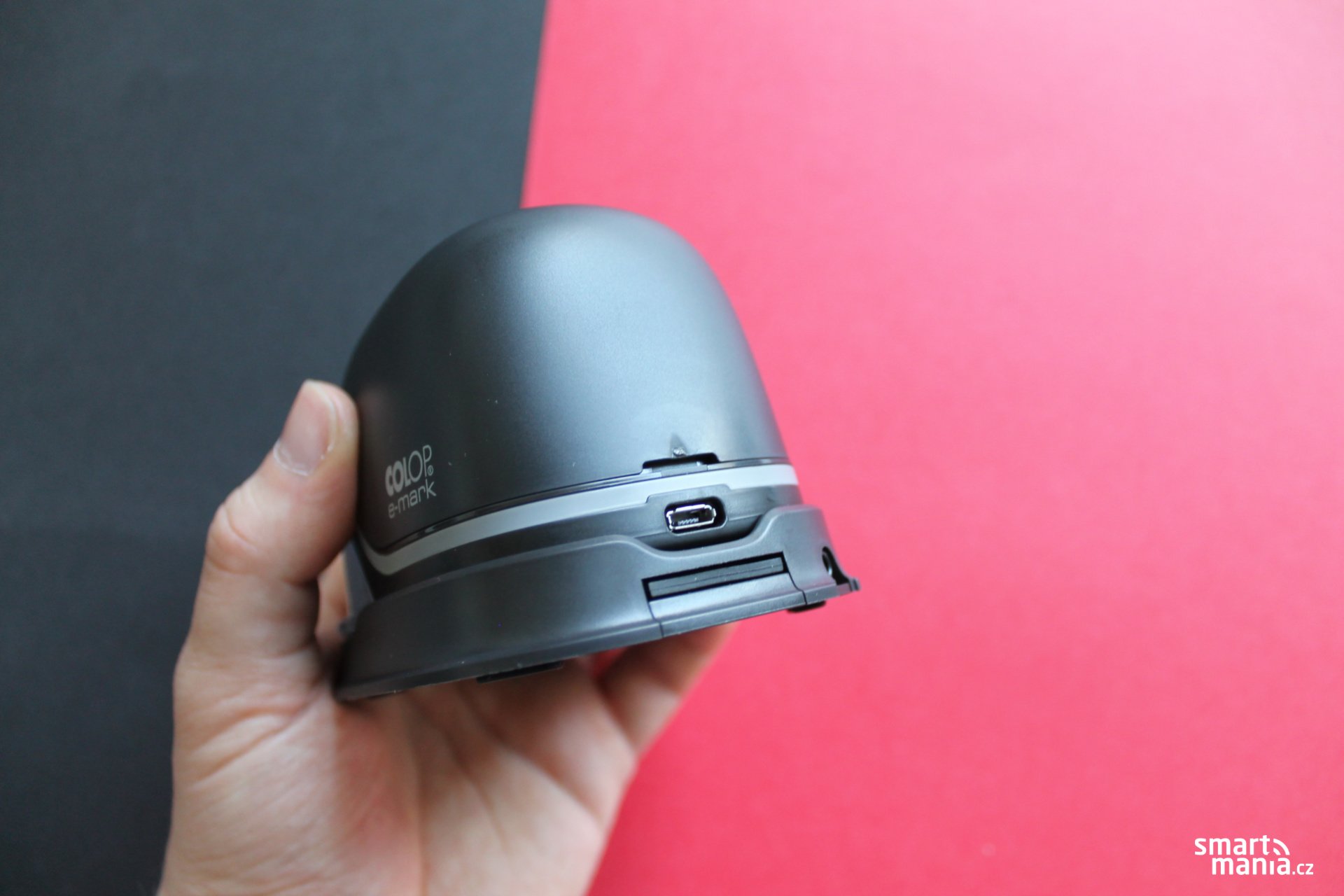 Rozměry 111,2 x 76,5 x 72,7 mm a hmotnost 224,5 gramů je sice vyšší než u běžného razítka, zase tak často s ním ale necestujete. Nabíjecí kabel je poměrně krátký, takže je potřeba mít zásuvku blízko stolu. Součástí balení je také microUSB kabel pro synchronizaci s počítačem.