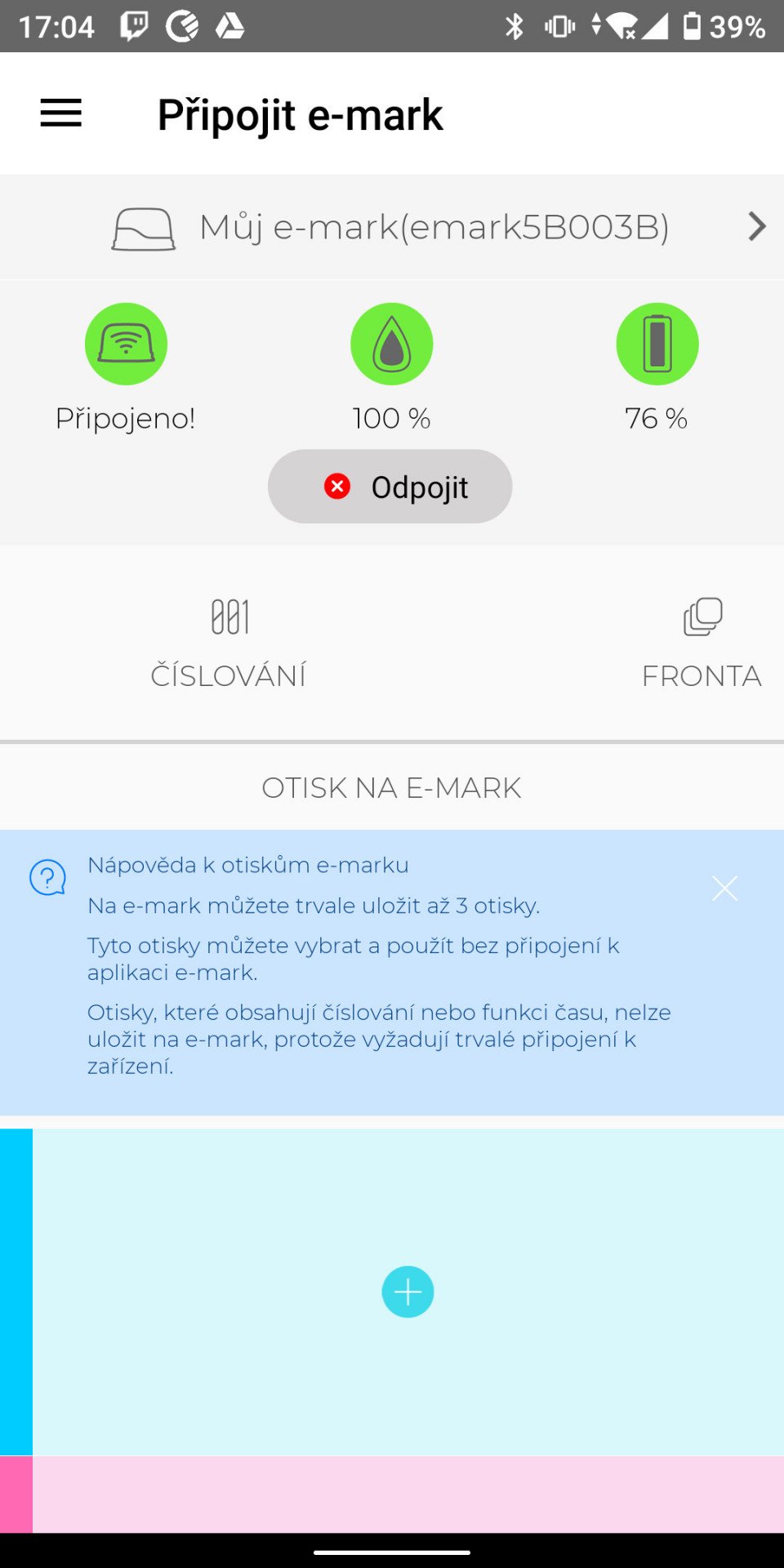 Pro správné fungování je potřeba e-mark spárovat s mobilním telefonem skrze aplikaci, případně propojit s počítačem. Následně můžete využívat razítko i offline, což je spíše samozřejmost nežli vítaná funkce. Možností nastavení vlastního otisku jsou více než dostačující a bohaté, takže si každý vybere to pravé pro něj.