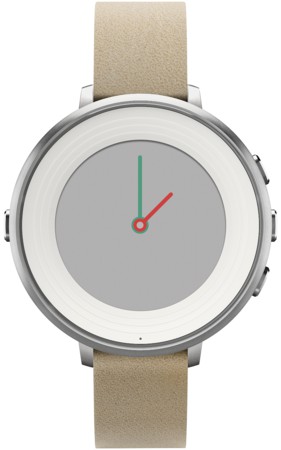 Na elektronický inkoust vsází i nový model Pebble Time Round, který se pyšní, jak již název napovídá, kulatým displejem. Displej dokáže zobrazit 64 barev a díky jeho podsvícení nepřijdete o důležité informace ani po soumraku. Kryje jej odolné 2,5D sklo Gorilla Glass a obklopuje poměrně široká luneta s vyznačením čtvrthodin. Hodinky mají kompaktní rozměry – 38,5 × 38,5 × 7,5 mm, a nízkou hmotnost 28 gramů, i přesto, že rám a okraje jsou vyrobeny z nerezové oceli.