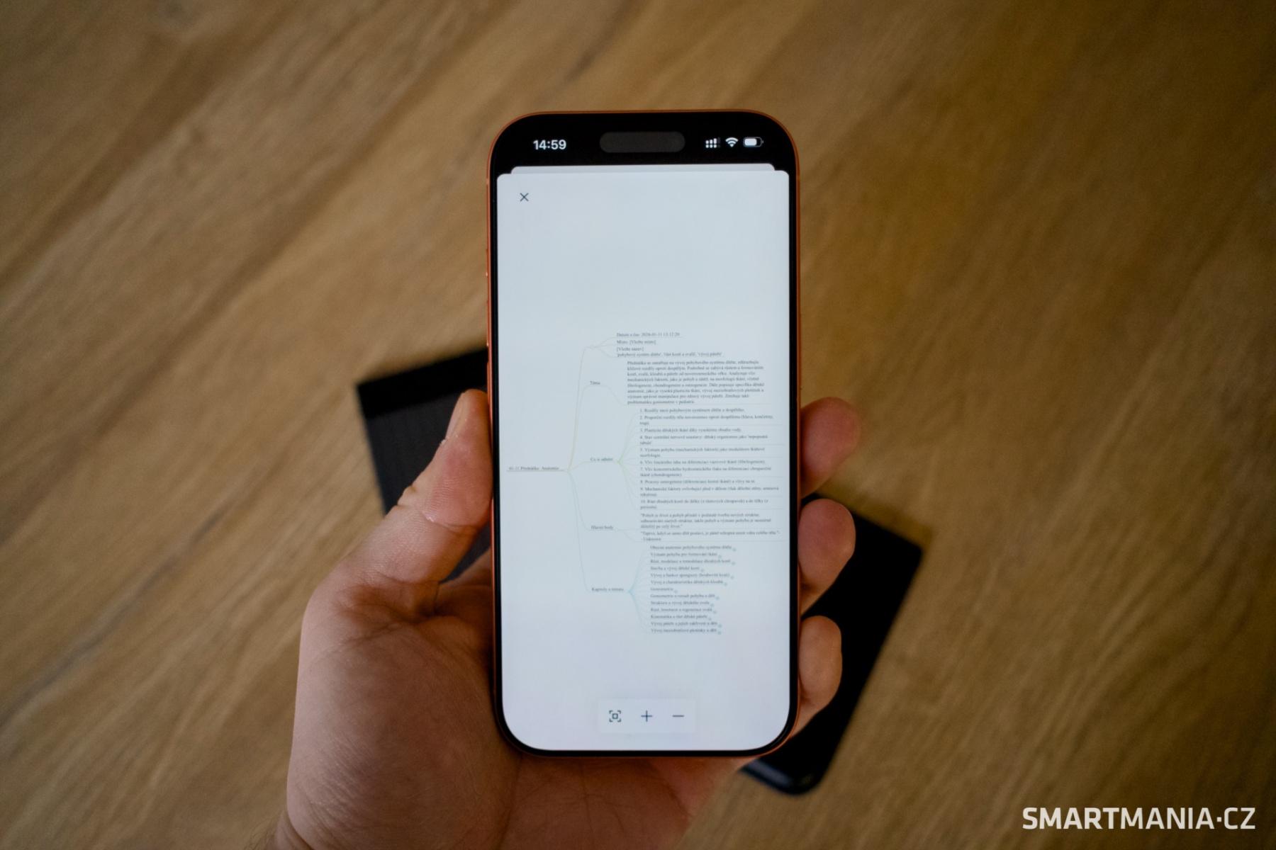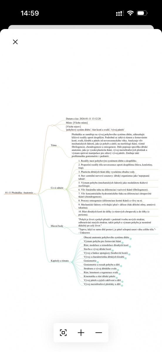 Nejvíce jsem Plaud Note Pro využil ve prospěch své kamarádky, která potřebovala stručně a jasně shrnout masérské přednášky. Ty připomínaly to nejhorší, co si pamatuji z univerzity – dlouhé, nudné, monotónní a často se vsuvkami mimo téma. Vypustil jsem tedy na několik přednášek sílu Plaudu, který se jen tak utahat nenechal a z několika hodin nezáživného záznamu dokázal vytvořit nejen relativně přesný přepis (tu a tam se pochopitelně spletl, ale to může být i vina mluvčího), ale také užitečné shrnutí a myšlenkovou mapu, která pomohla obsah lépe pochopit.