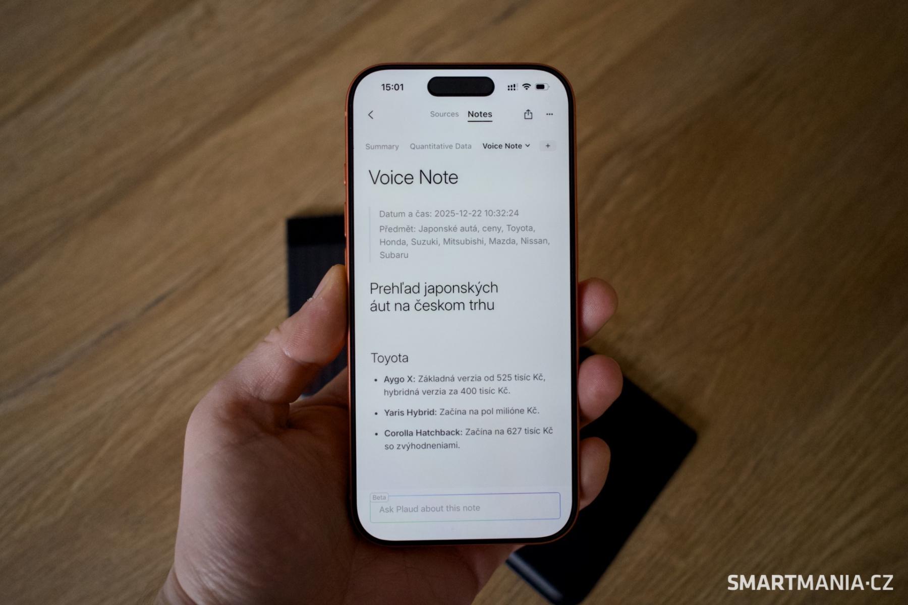 Na záznam vlastních myšlenek si ale toto zařízení nejspíše pořizovat nebudete, případně k němu budete muset být v tomto ohledu shovívaví, pakliže nejste rozený Cicero. V redakci jsme Plaud Pro společně s kolegy nejvíce využívali na tiskových konferencích, kde nám pomáhal s následnou sumarizací získaných informací. S vymýšlením testovacích scénářů mi také pomohl prakticky každý známý, kterému jsem o Plaudu a jeho schopnostech řekl. To je také poměrně solidní reference o tom, že pro tento typ zařízení bezesporu existuje mnoho různých cílových skupin.
