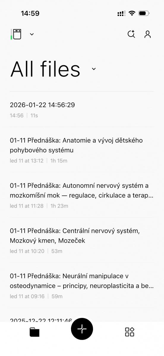 Když zmiňuji Plaud Note Pro, mám sice na mysli fyzické zařízení, avšak to je bez aplikace jen drahým diktafonem. Právě mobilní aplikace je srdcem a mozkem celého projektu, bez kterého by Note Pro nebyl ani poloviční. To se nicméně dá říci i obráceně, neboť bez připojeného Plaudu mobilní aplikaci zkrátka nepoužijete, tedy ne pro vytváření nových záznamů. To jenom pro případ, že by vás napadlo sáhnout po aplikaci a jejím předplatném bez nákupu fyzického diktafonu, tak na to můžete rovnou zapomenout.