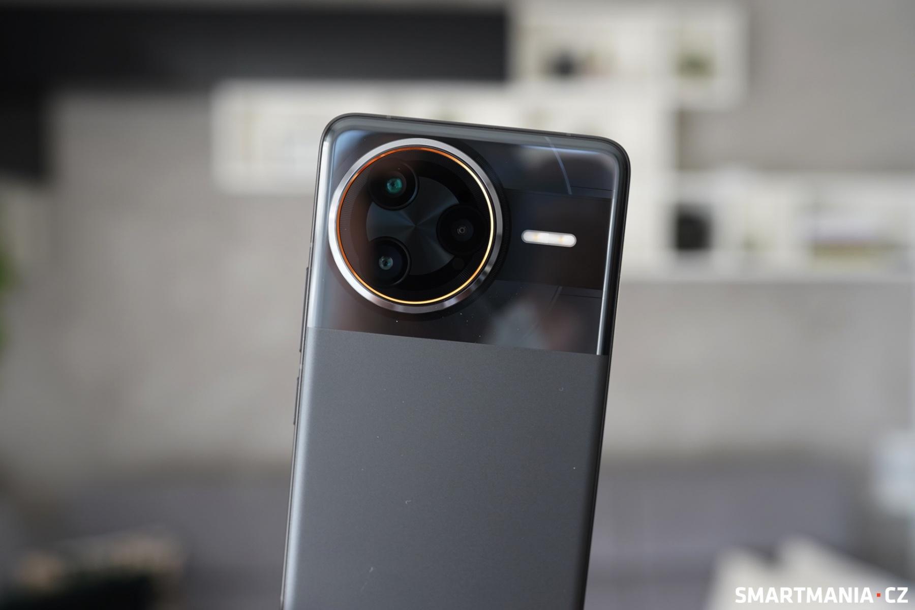 V horní části obrazovky najdeme kruhový výřez pro 32Mpx selfie kamerku, v kruhovém otvoru na zádech se pak nachází následující tři fotoaparáty: