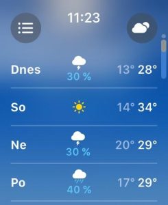 Po kliknutí na digitální korunku následuje otevření menu aplikaci. To však již nyní nepřipomíná medovou plástev, ale o poznání přehlednější seznam aplikací posuvný směrem dolů a nahoru. Tou nejdůležitější inovací v rámci systému watchOS 10 jsou však sady widgetů.