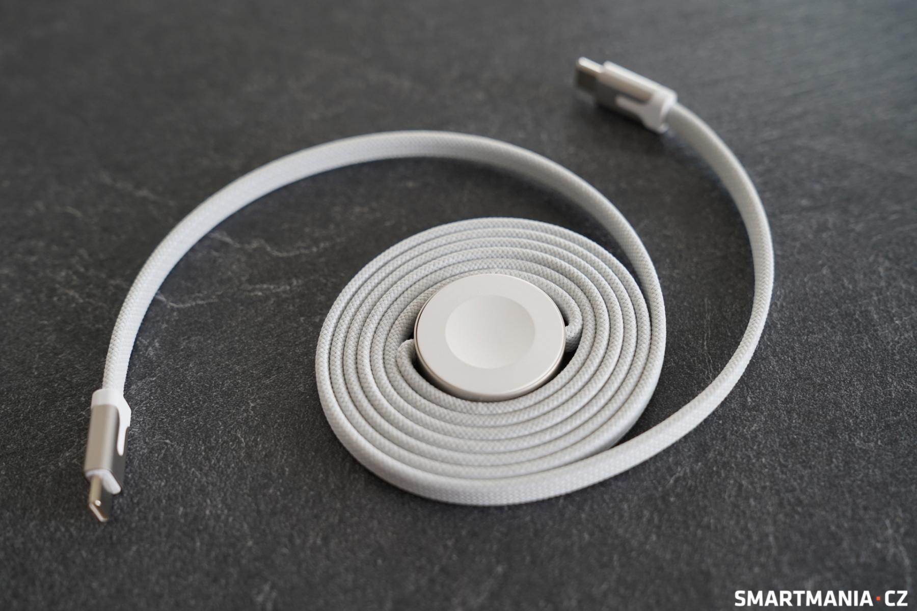 Pro majitele hodinek Apple Watch je tento unikátní kabel prakticky povinnost. Jedná se o 1,5 metru dlouhý kabel, v jehož středu se nachází integrovaná bezdrátová nabíječka pro hodinky Apple Watch. To znamená, že můžete nabíjet svůj telefon a zároveň mít na integrované nabíječce položené hodinky, které nabíjíte zároveň s ním.