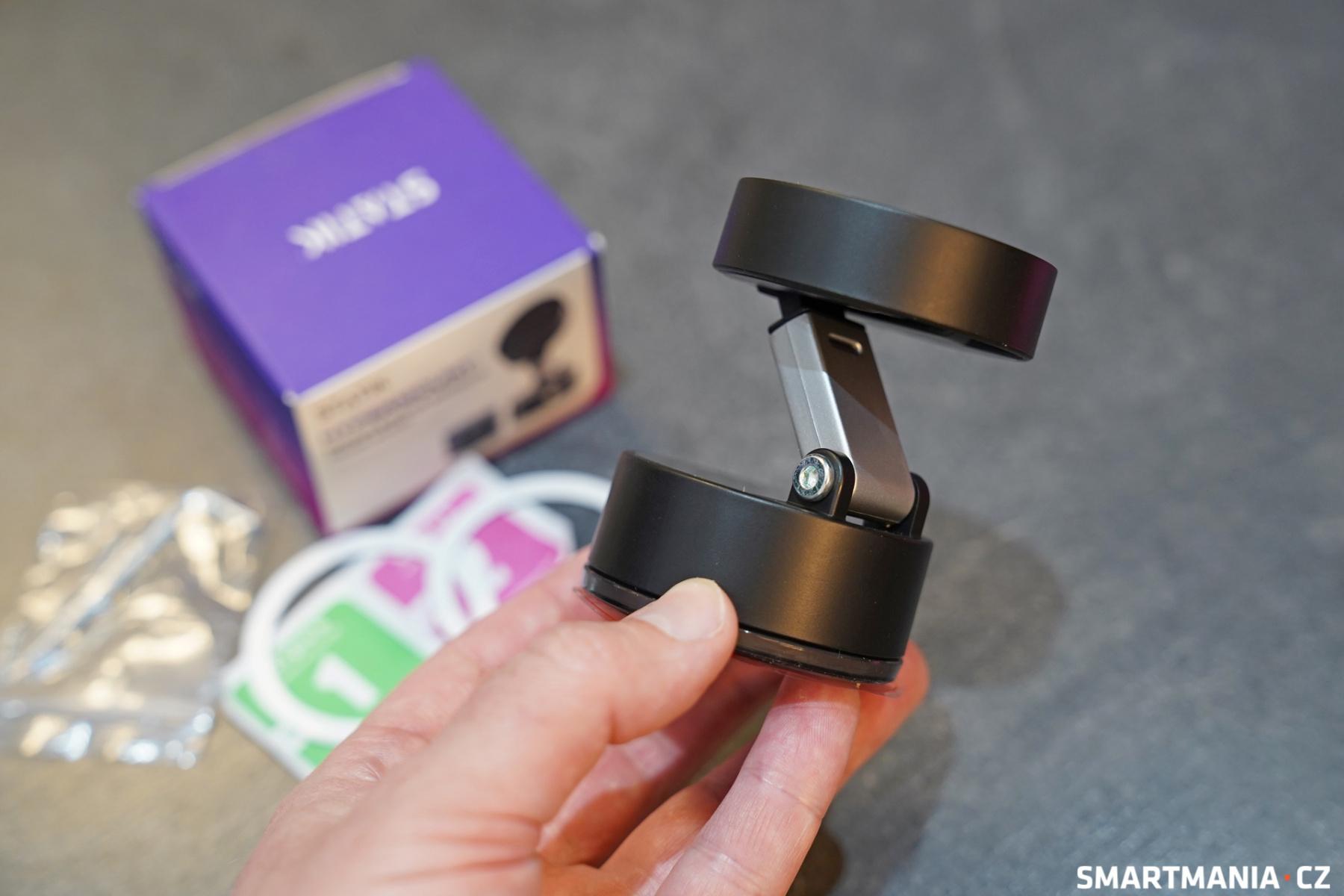 Kromě těchto kroužků je součástí balení také nálepka na hladké povrchy, díky které bude uchycení ještě pevnější. Samotné uchycení držáku na podklad je velmi jednoduché. Stačí ho postavit na místo, pomocí posuvného přepínače ve spodní části uzamknout vakuový systém a máte hotovo. Výhodou tohoto řešení je, kromě pevného uchycení, i absence jakýchkoliv zbytků po odpojení.