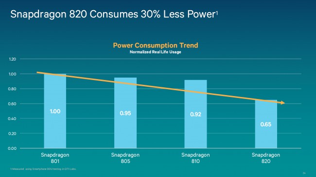 Velkou zásluhu na tom má především modernější 14nm výrobní proces. Nová jádra Kryo jsou navíc tak silná, že se přibližují čipu Apple A9, díky více jádrům jej dokonce v multijádrových scénářích překonávají. Pozadu však nezůstává ani grafický výkon, Adreno 530 má být skutečná herní bestie. Kromě toho řadič paměti zvládá až dvojnásobnou propustnost oproti svému předchůdci, což má za následek lepší chod her s vysokým rozlišením a lepší práci se 4K videem.