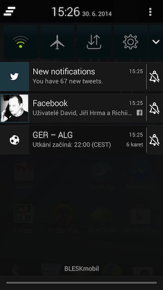 Praktická je funkce Ztlumit upozornění, kde najdete seznam všech nainstalovaných aplikací a možnost vypnout u nich notifikace. Výrobce implementoval také jednoduchá gesta pro probuzení telefonu a rychlé otevření výchozí hudební aplikace, případně skoku na předchozí nebo následující skladbu. Bohužel také tyto funkce měly žalostnou odezvu a někdy trvalo dlouhé vteřiny, než telefon zareagoval.