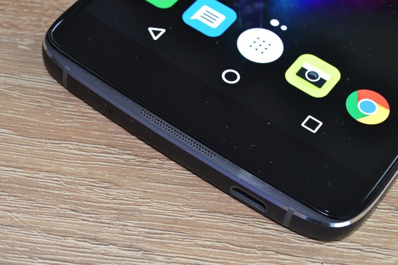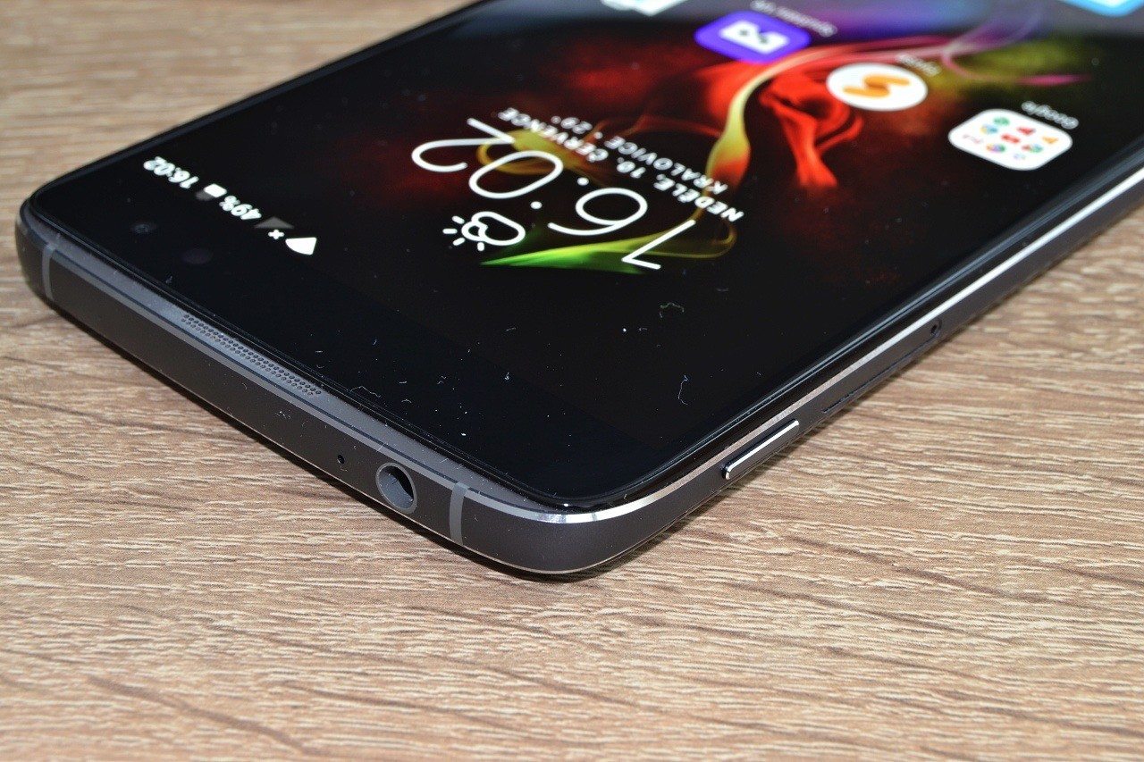 Datový konektor microUSB je umístěný na spodní hraně. Na té opačné najdete konektor sluchátkového výstupu. Díky tomu, že je telefon v podstatě symetrický a má navíc umístěné mikrofony i reproduktory na obou koncích, můžete jej používat jak v klasické poloze, tak i v otočeném stavu. Podobnou funkcí byl vybaven i předchozí model Idol 3.