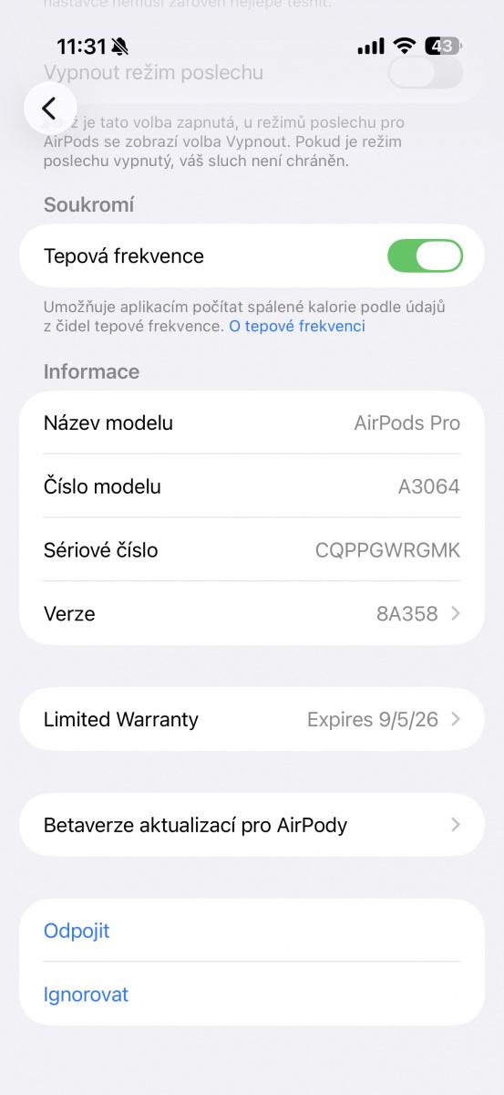 Horkou novinkou je senzor srdečního tepu. Apple to inzeruje jako vychytávku, která potěší uživatele bez Apple Watch. V praxi vám sluchátka měří tep při sportovních aktivitách, které vyvoláte prostřednictvím aplikace Fitness v telefonu. Nabídka je celkem široká, nechybí běh, chůze, kolo a další klasiky známé z chytrých hodinek. Sympatickou finesou je, že když máte na uších AirPods Pro 3 a na ruce hodinky Apple Watch, měření probíhá na obou zařízeních, ale uloží se pouze přesnější hodnota.