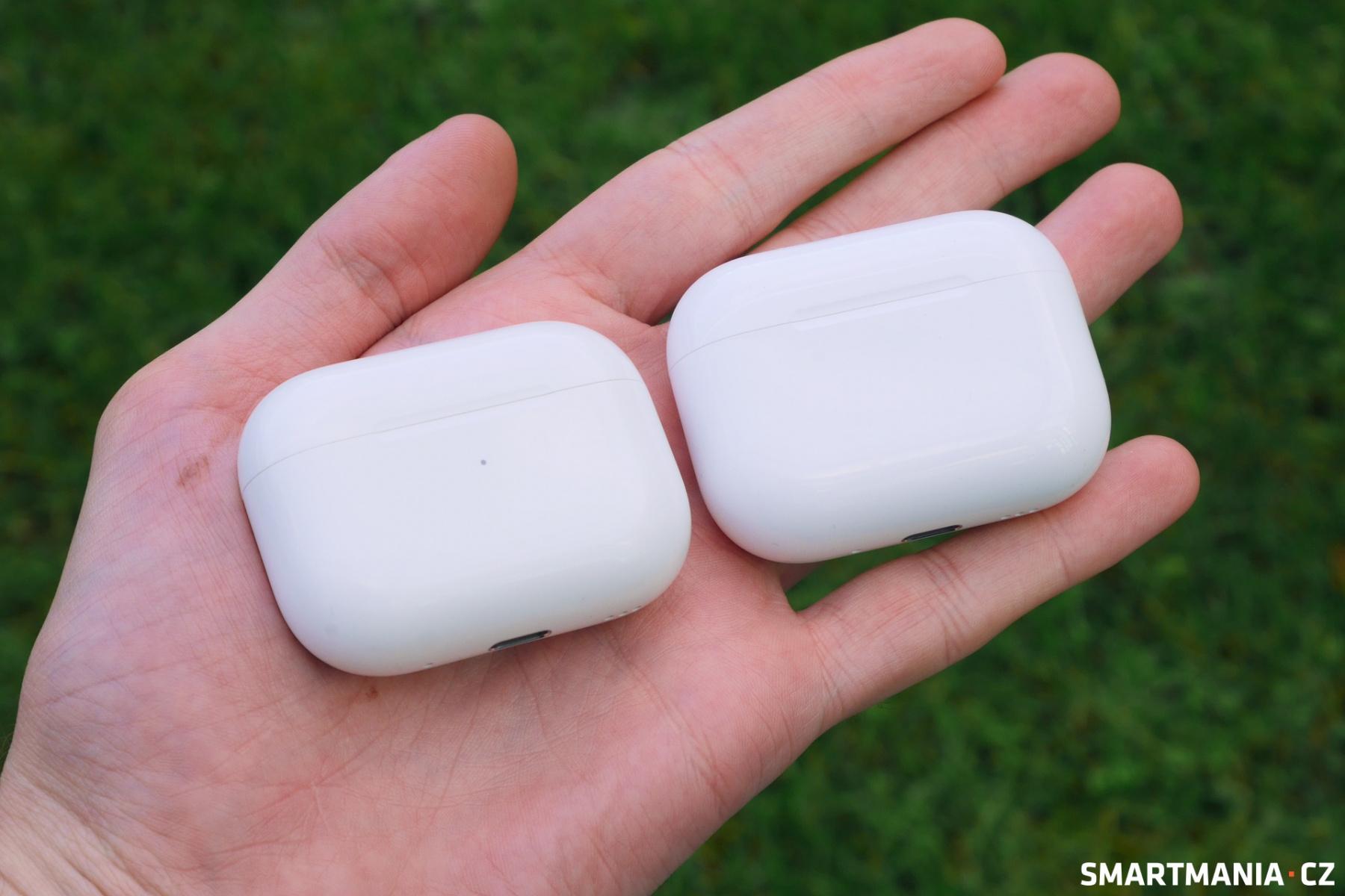 Dobíjecí boxík narostl na výšku i šířku o 2 milimetry, což je rozdíl absolutně neznatelný, ale pokud jste pro vnější ochranu používali pouzdro či kryt, poznáte to ihned – s novým totiž nejsou kompatibilní. Krabička pro uchování sluchátek má stále vlastní mikrofon, reproduktor, chytrý čip pro vyhledávání v prostoru, USB-C i kovové poutko pro uchycení. Zmizelo ale párovací tlačítko a pořád je vyrobeno z lesklého bílého plastu, na kterém se i jen po 24 hodinách nošení po kapsách začnou zjevovat vlásečnicové škrábance.