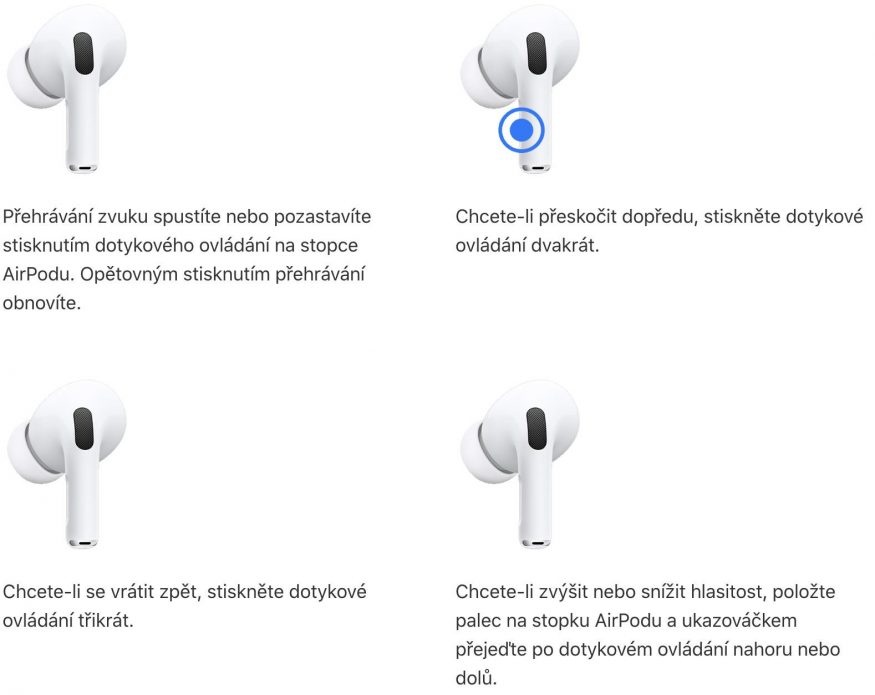 Pro mě samotného byl přechod z první generace AirPods Pro (poháněné čipem H1) poměrně výraznou změnou. Nejen kvůli lepšímu zvuku, ale i efektivnějšímu ANC, které jsem ocenil nejen při běžném používání, ale například i na palubě letadla. Přibylo také ovládání přehrávání hudby skrze dotykovou plošku na těle sluchátka. Tu lze využít k zahájení přehrávání, pozastavení, přepnutí na další/předchozí skladbu či snížení/zvýšení hlasitosti.