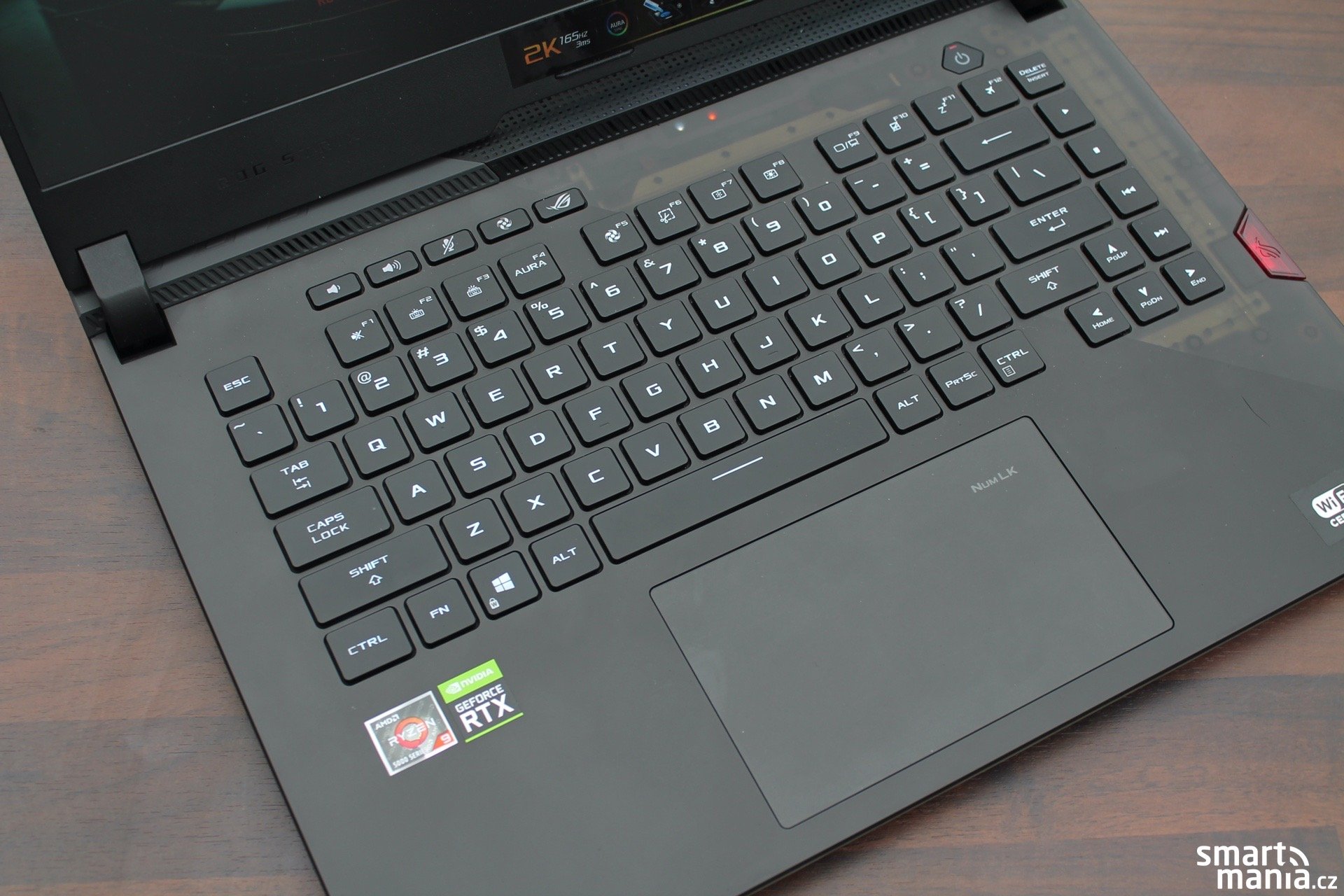 „Hertz je jednotkou frekvence (kmitočtu) v soustavě SI. Jde o odvozenou jednotku, která vyjadřuje, kolik cyklických (pravidelně se opakujících) dějů se odehraje za jednu sekundu.“ Wikipedia. Proč je tady citát z Wikipedie? Inu, jde o herní notebook a displej je nesmírně důležitou částí gamingu, takže těch „hertzů“ potřebujete hodně. My jsme měli zapůjčenou variantu s 2K (2560 x 1440 px) displejem a frekvencí 165 Hz. A to nejde o vrcholnou variantu, nebo snad ano? Asus nabízí buď tuto variantu nebo si můžete vybrat verzi s nižším Full HD rozlišením, ale zase s frekvencí 300 Hz. Takže není zde na výběr lepší nebo horší, máte na výběr vyšší rozlišení nebo vyšší frekvenci.
