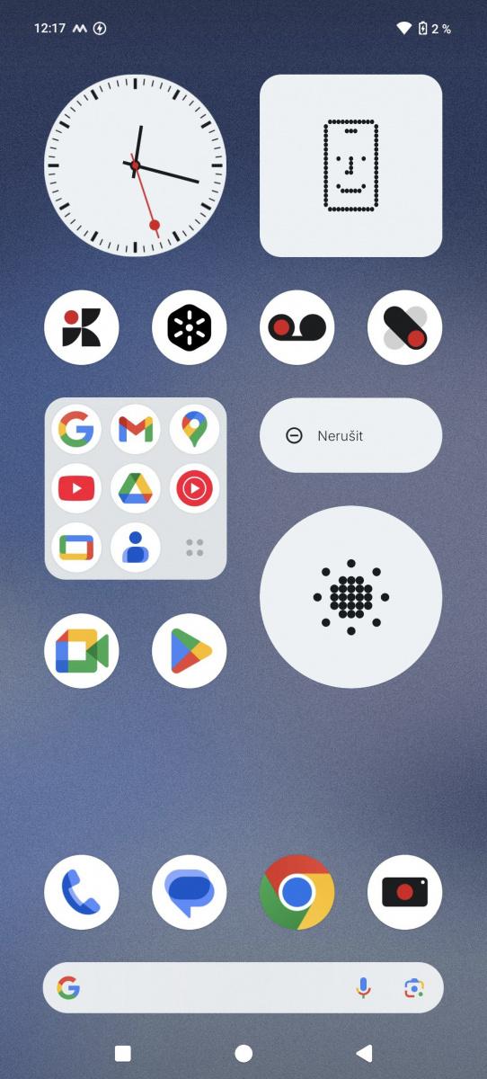 Nejviditelnější úpravou je retro grafika poskládaná z teček a ladění prvků do černé, červené a krémově bílé. Někdy je tato stylistika hůř čitelná a pochopitelná, ale nemůžu popřít, že zaujme. Její potíže nastávají ve chvíli, kdy si nevystačíte s předinstalovanými aplikacemi a widgety nebo si pozměníte barevnou paletu prostředí.