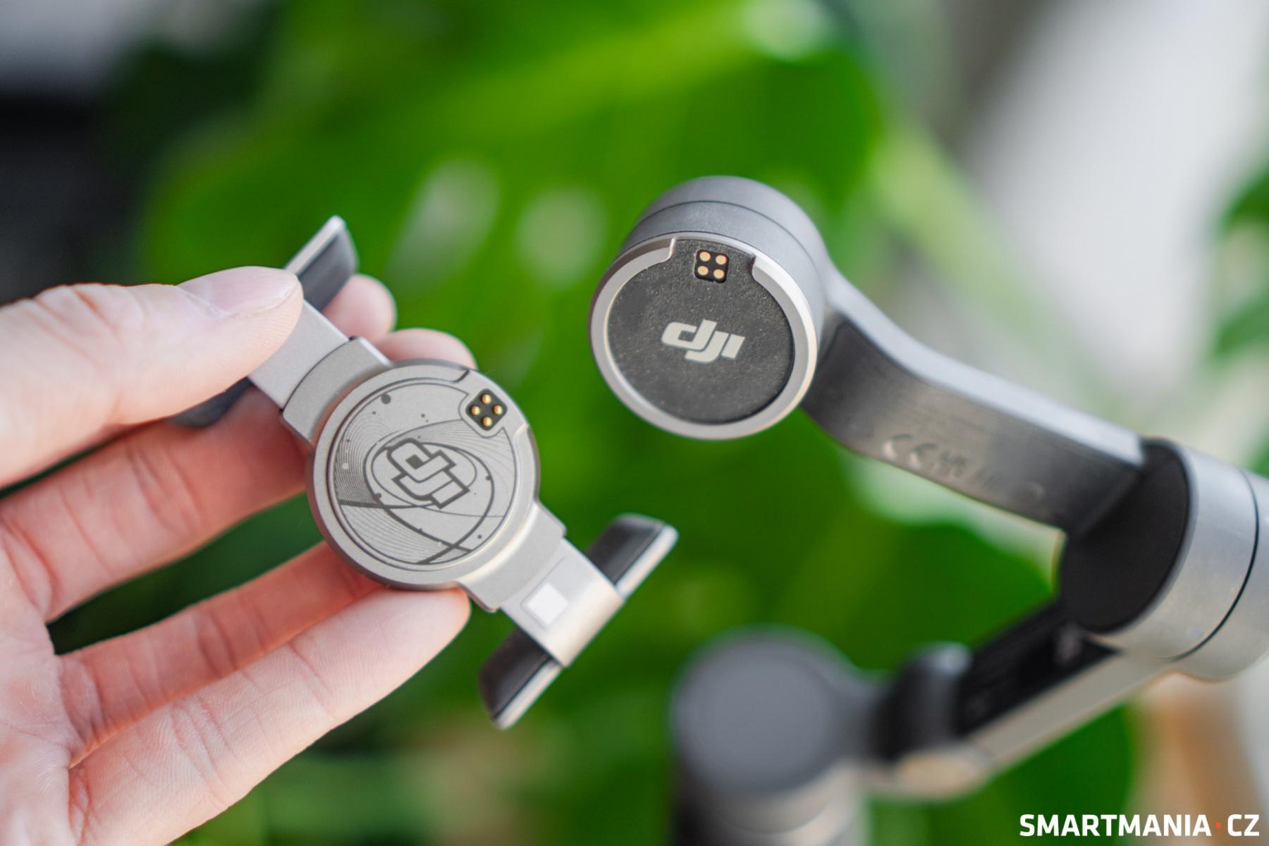 Již od čtvrté generace známe magnetické uchycení smartphonu, které nabízí výrazné usnadnění manipulace. Jsem rád, že se DJI toto řešení zachovává a je zpětně kompatibilní s minulými uchyceními, například kovou „mincí“. Nicméně letošní spona má v sobě integrované piny a žlábek pro připevnění speciální multifunkčního modulu, což je také výrazná novinka.