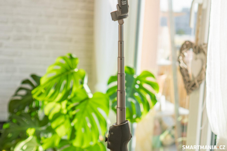 Model 7P ale přichází s velkou novinkou v podobě výsuvné selfie tyčky. Tu lze ručně vysunout do délky 21,5 cm, což není úplně málo. Tyčka je vyrobena z hliníku a je opravdu hodně pevná a robustní. Teleskopická tyč značně zvětší úhel záběru a ve finále vám gimbal skvěle poslouží i jako menší stativ pro váš smartphone. Vysunuje a zasunuje se poměrně lehce, ale uměl bych si představit i motorický pojezd.